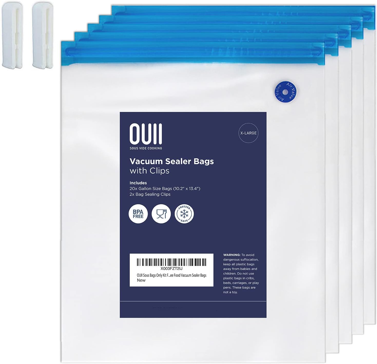 ⭐ BPA-Free, Non-Toxic Bags: They’re BPA-Free! Thermosafe from 185F to -4F. OUII reusable bags are made from a unique nylon/PE!, food-grade quality. So, you can cook & store an endless supply of easy, healthy food for the whole family. This sous vide kit includes 20x Gallon Size Bags (10.2″x13.4″), 2x bag sealing clips