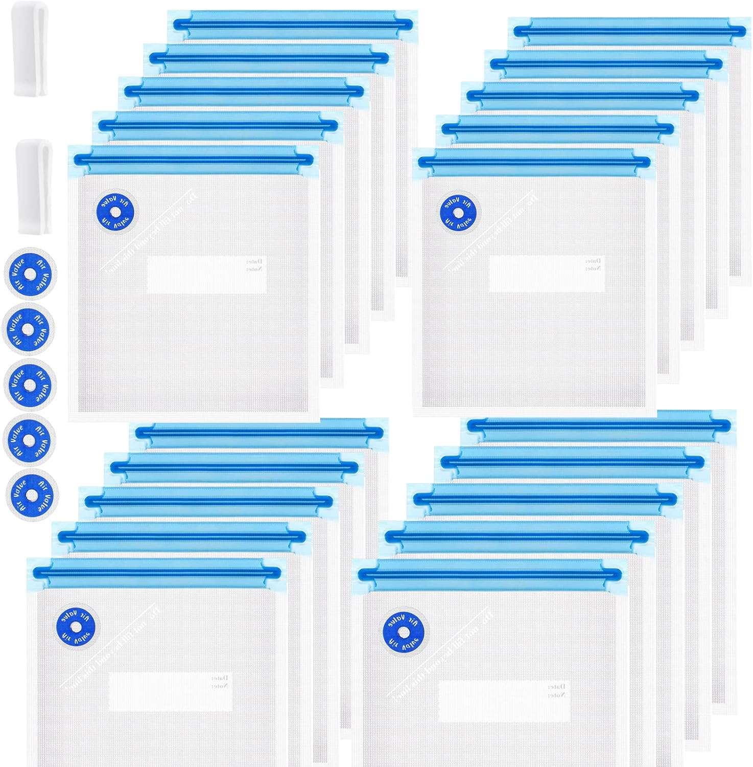 Sous Vide Bags Reusable 27Pcs, BPA Free Food Vacuum Sealer Bag, Food Storage Bag, Vacuum Zipper Bags for Sous Vide Cooking – 20Pcs Food Sealer Bag & 5 Air Valves & 2 Seal Clips (8.5X8.5 in) 1.4L