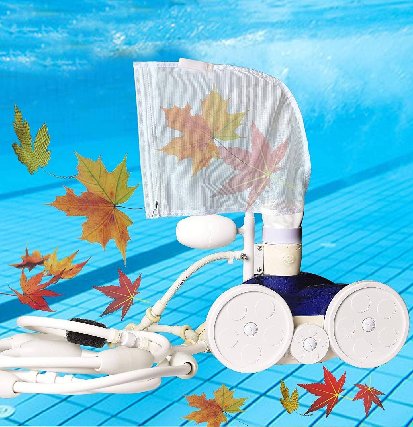 These nylon mesh pool cleaner bags with strong stitching and tights weave, is brilliant on picking up debris or taking in leaves and small twigs without tearing at the bottom of the pool.