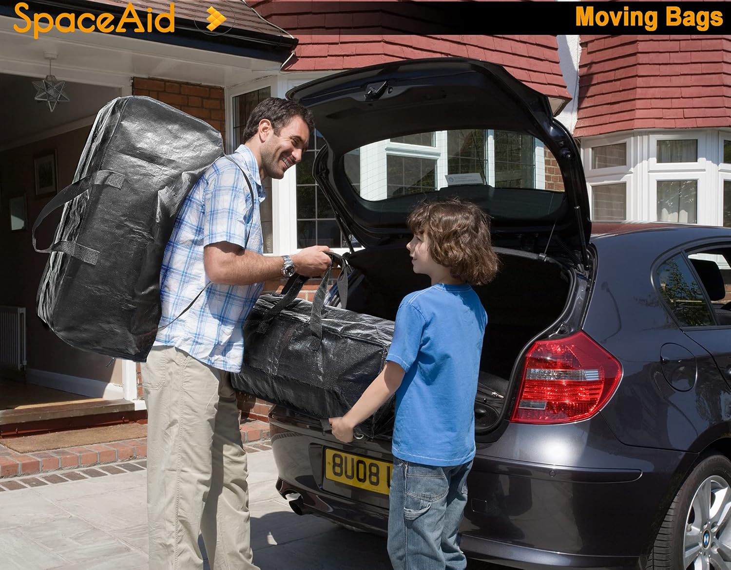 SpaceAid Heavy Duty Moving Bags 8 Pack, Large Storage Totes Bins with Backpack Straps, Strong Handles & Zippers, Packing Moving Boxes Supplies, College Dorm Room Essentials, Black