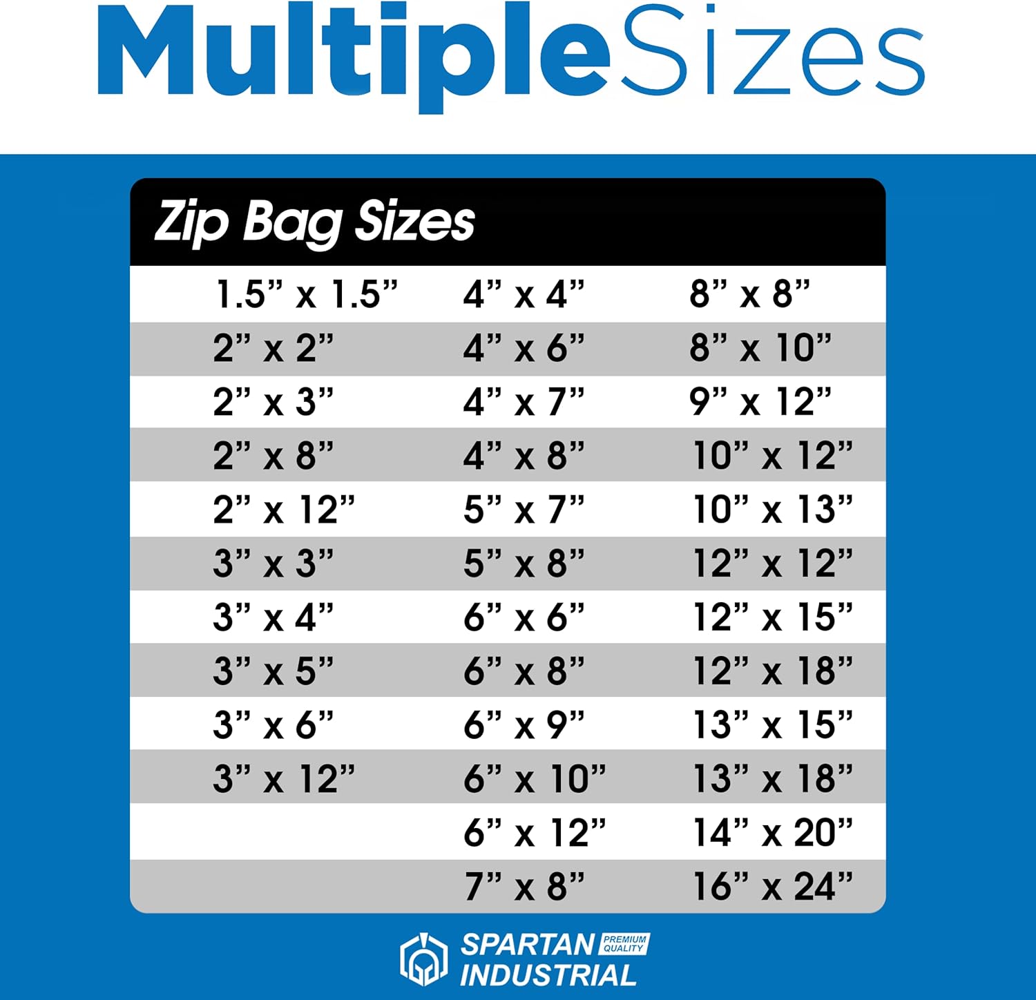 Spartan Industrial – 13″ X 15″ (100 Count) 2 Mil Clear Reclosable Zip Plastic Poly Bags with Resealable Lock Seal Zipper