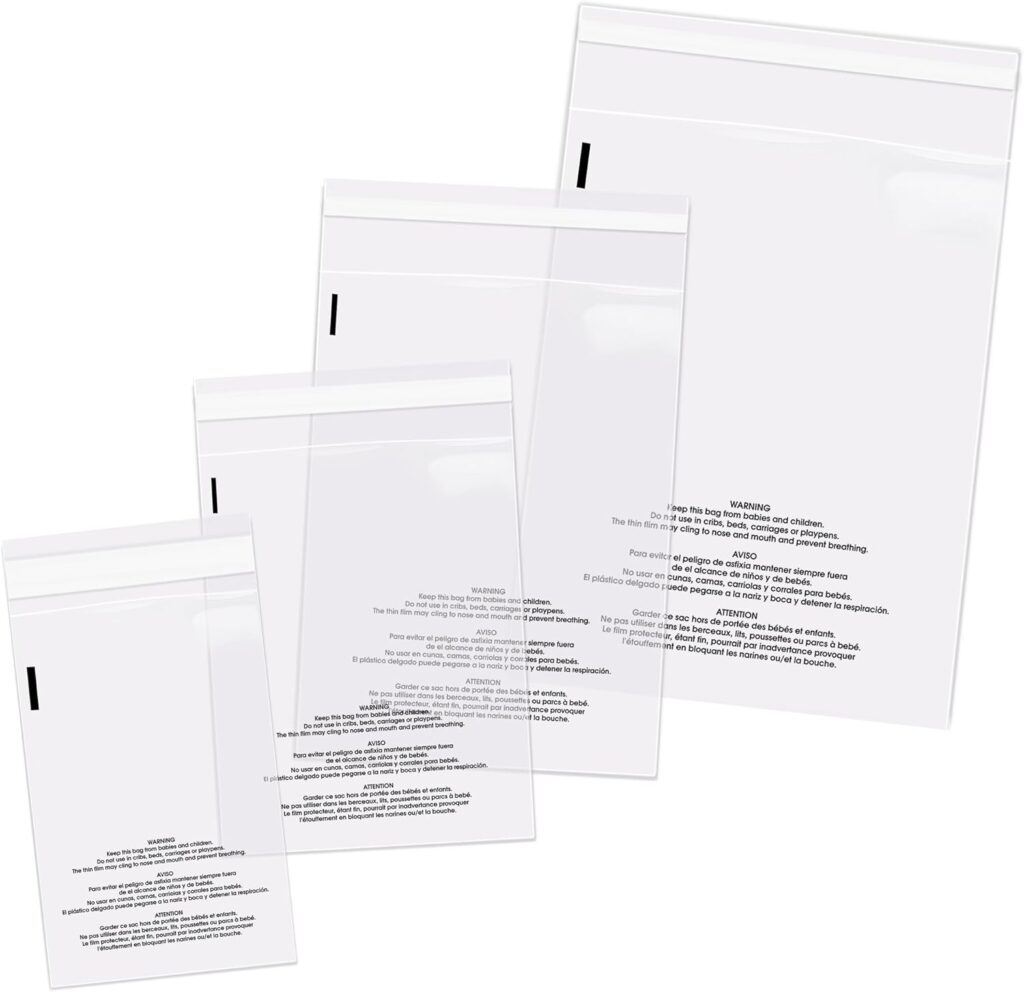Our clear packaging bags come with a pre-printed suffocation warning in three languages, meeting state and fulfillment shipping requirements.