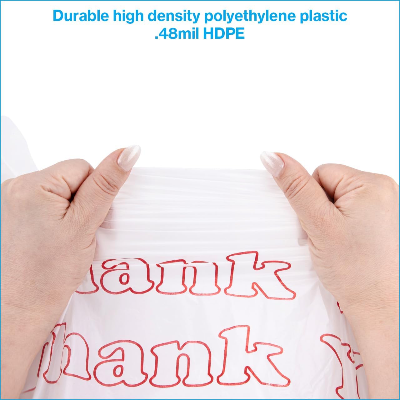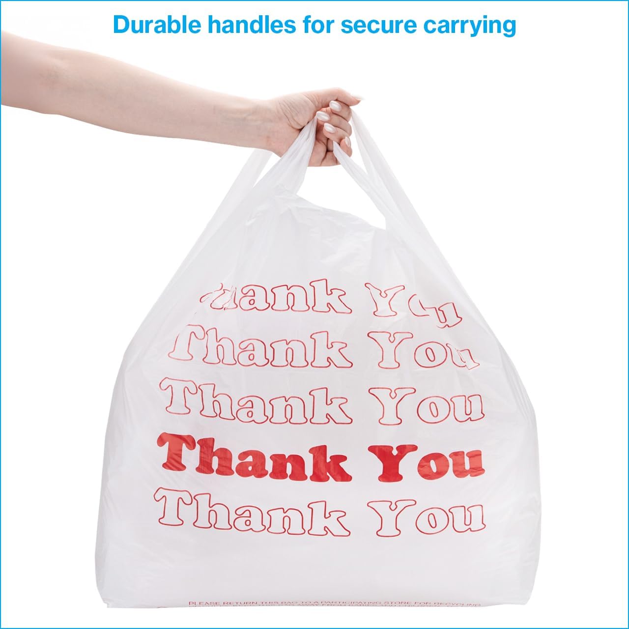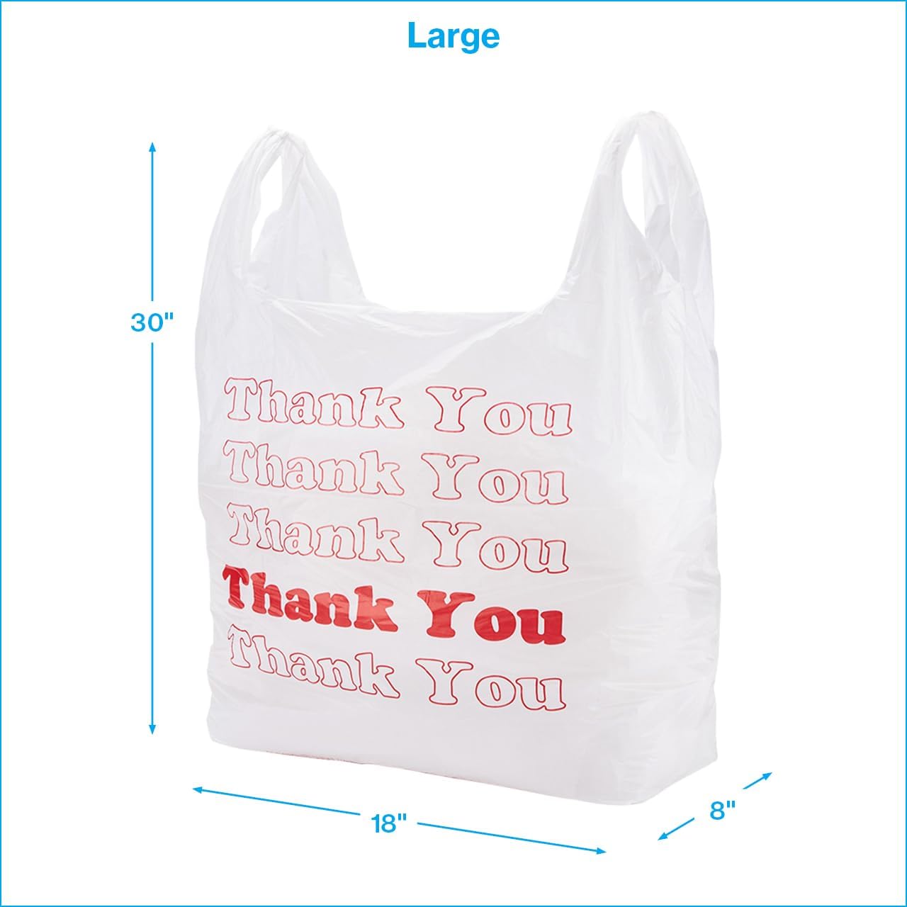 SSWBasics Premium Thank You T-Shirt Bags – 500 – Pack, 18” x 8″ x 30″, .48mil HDPE Thickness – Ideal for Restaurants, Retail, Grocery, Takeout – Standard Supermarket Size – Strong and Durable
