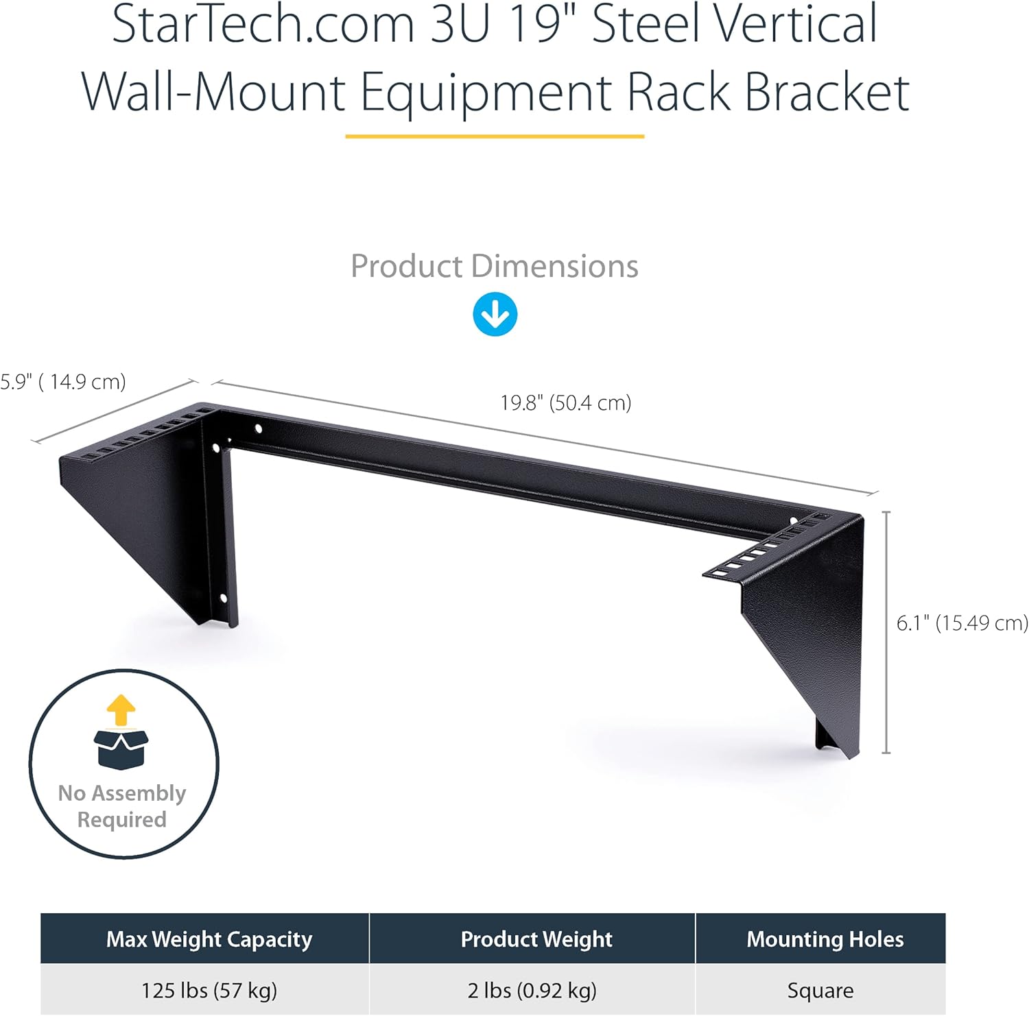 Equipment Rack Bracket – Attach Your 3U Equipment with Ease.This equipment rack bracket lets you attach your 3U rack mount equipment to a wall so that you don’t have to worry about storing it in your server racks. It can hold a total of 125.3 pounds thanks to its two-post construction, and it comes with all the screws you need for easy installation.Dimensions: 5.9inch(H) x 19.8inch(W) x 5.9inch(D). Weight capacity: 125.3 lbs. Arrives fully assembled with cage screws and nuts for mounting equipment into the rack. Equipment can be vertically wall mounted, or horizontally under a desk. Compatible with most 19inch rack mountable equipmen. Rack type: 2 post. U height: 3U. Frame type: Open frame. Front door type: Open. Wall mountable. Industry standards: EIA RS310-C. Compatibility: Network device, power strip, patch panel. Package contents: Vertical wall mount bracket, cage nuts and screws, self tapping wood screws – 3/16inch x 1 1/2inch. Weight: 33.2 oz. Warranty: Lifetime limited.