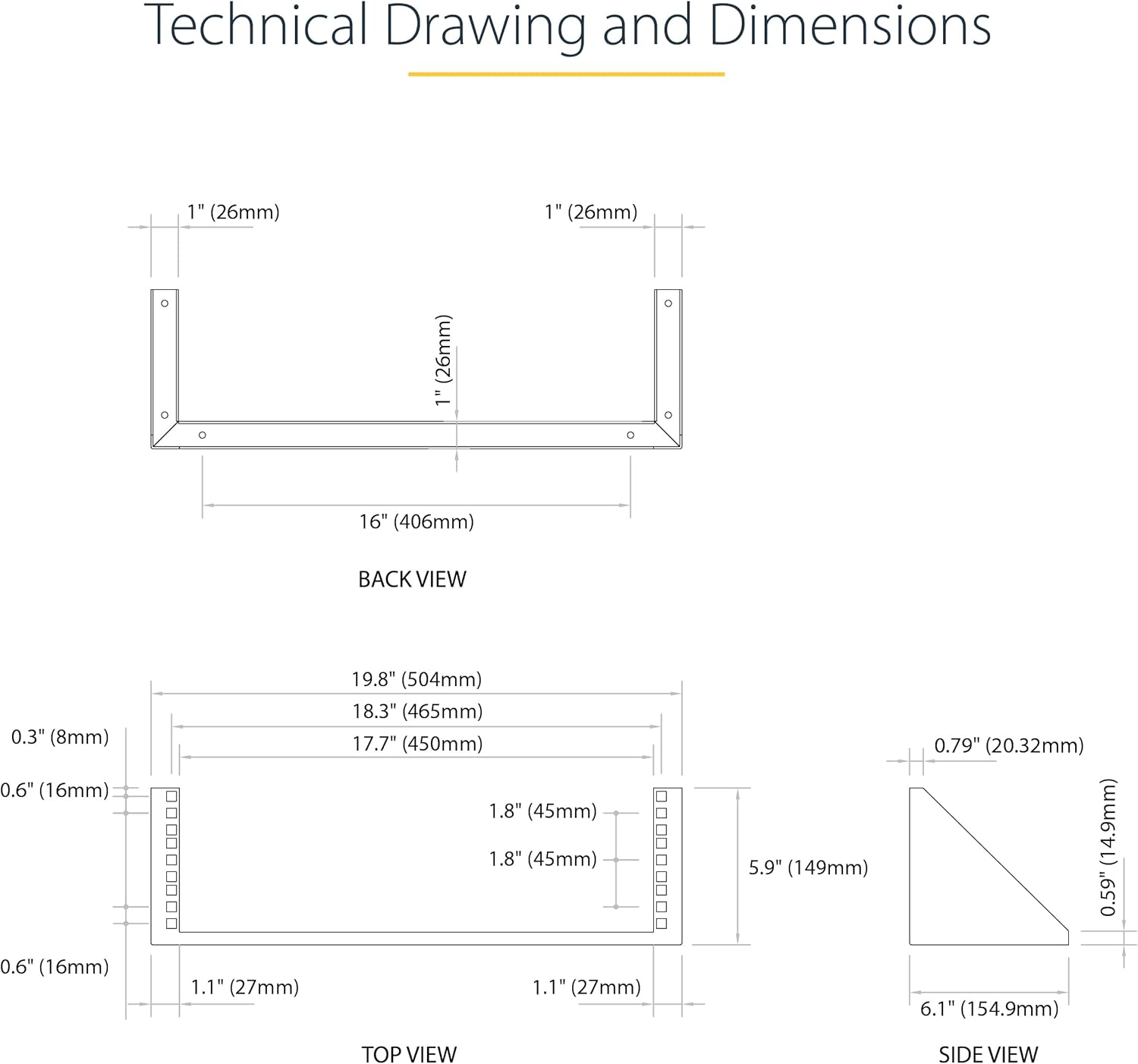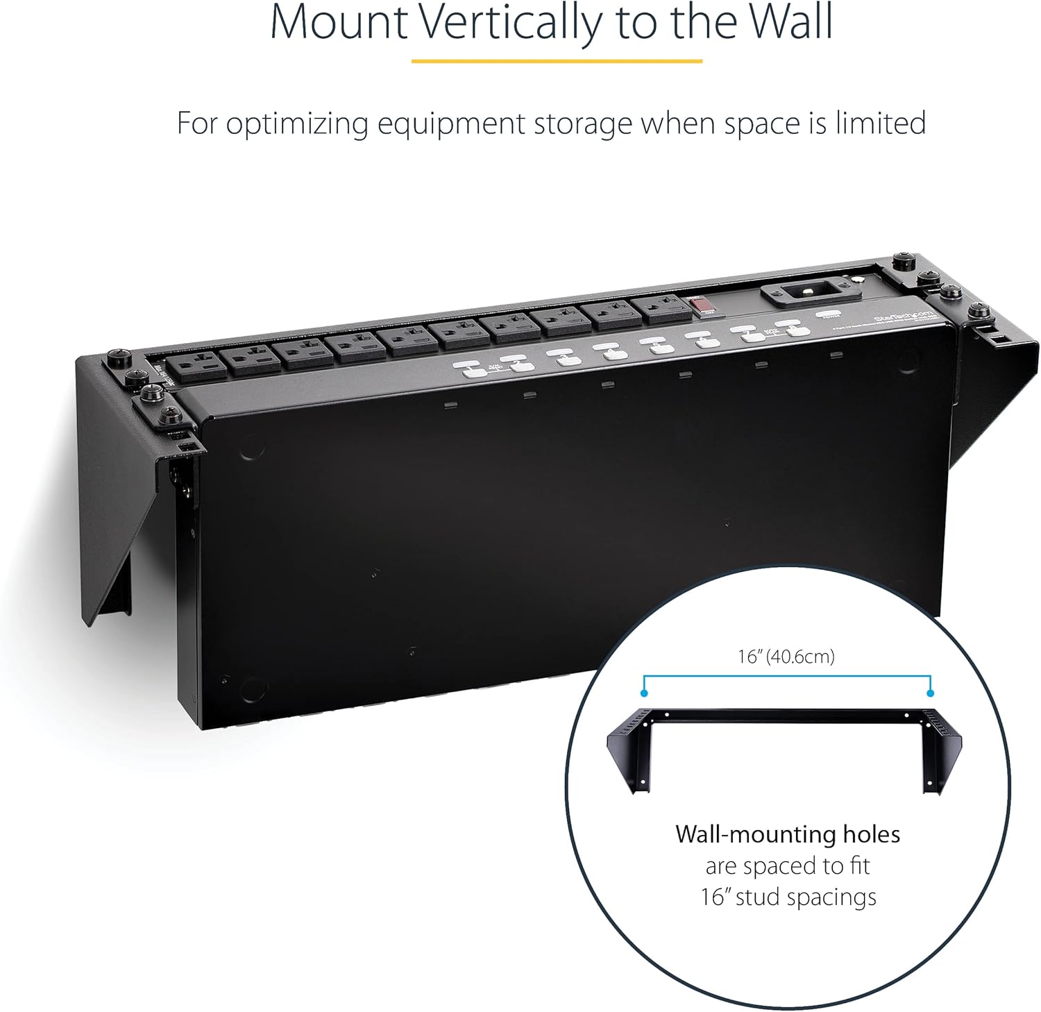 STANDARDIZED HOLE SIZING: The mounting holes on the 3U wall mount network rack are 16 inches center to center for greater stability, and mounting to standard wall studs