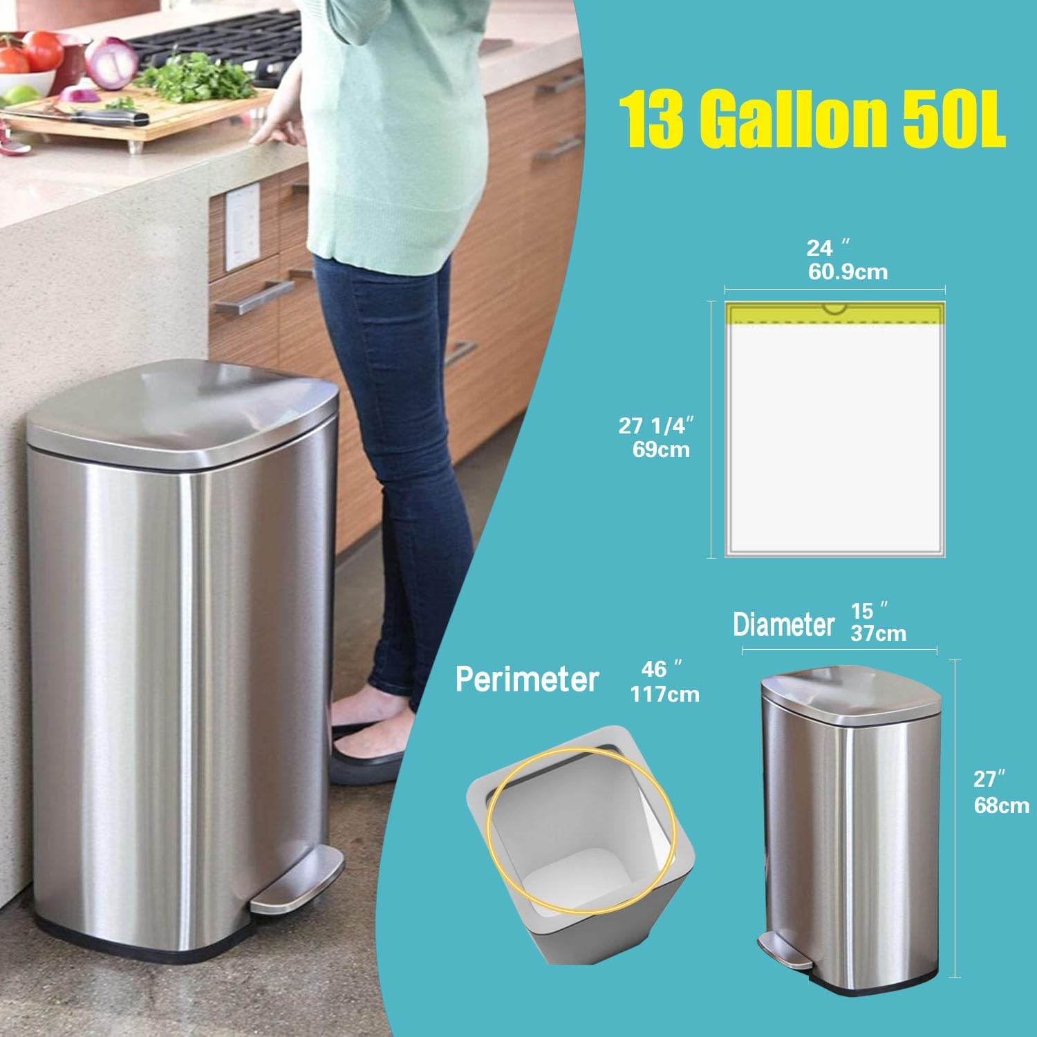 Includes 50 tall kitchen 13 gallon trash bags unscent