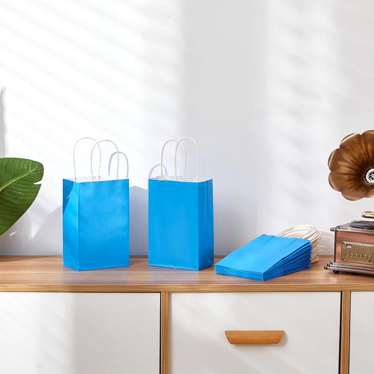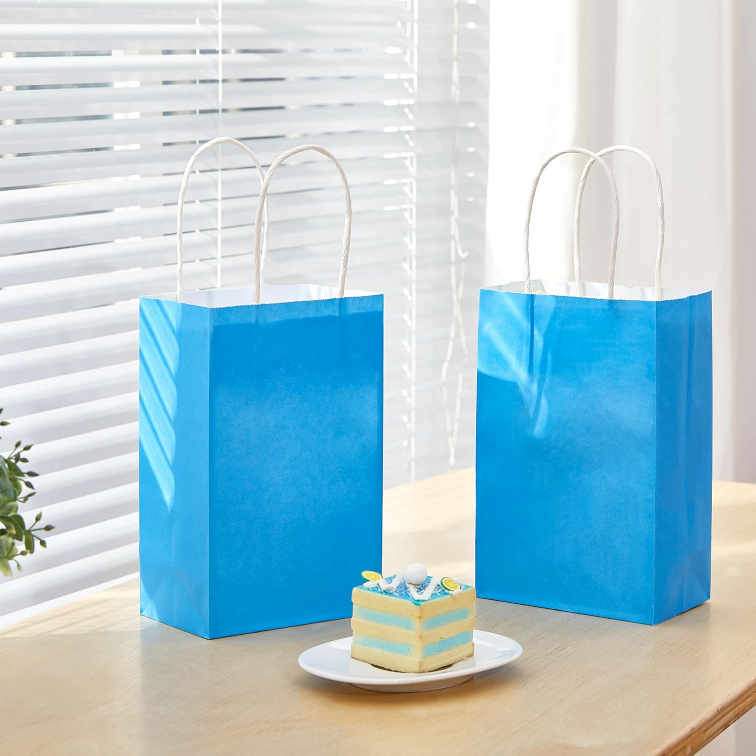 SUNCOLOR 24-Pack Blue Gift Bags with Handles – 8″ Goodie Bags for Party Favor Bags, Baby Showers, Birthdays & Special Occasions (Blue)