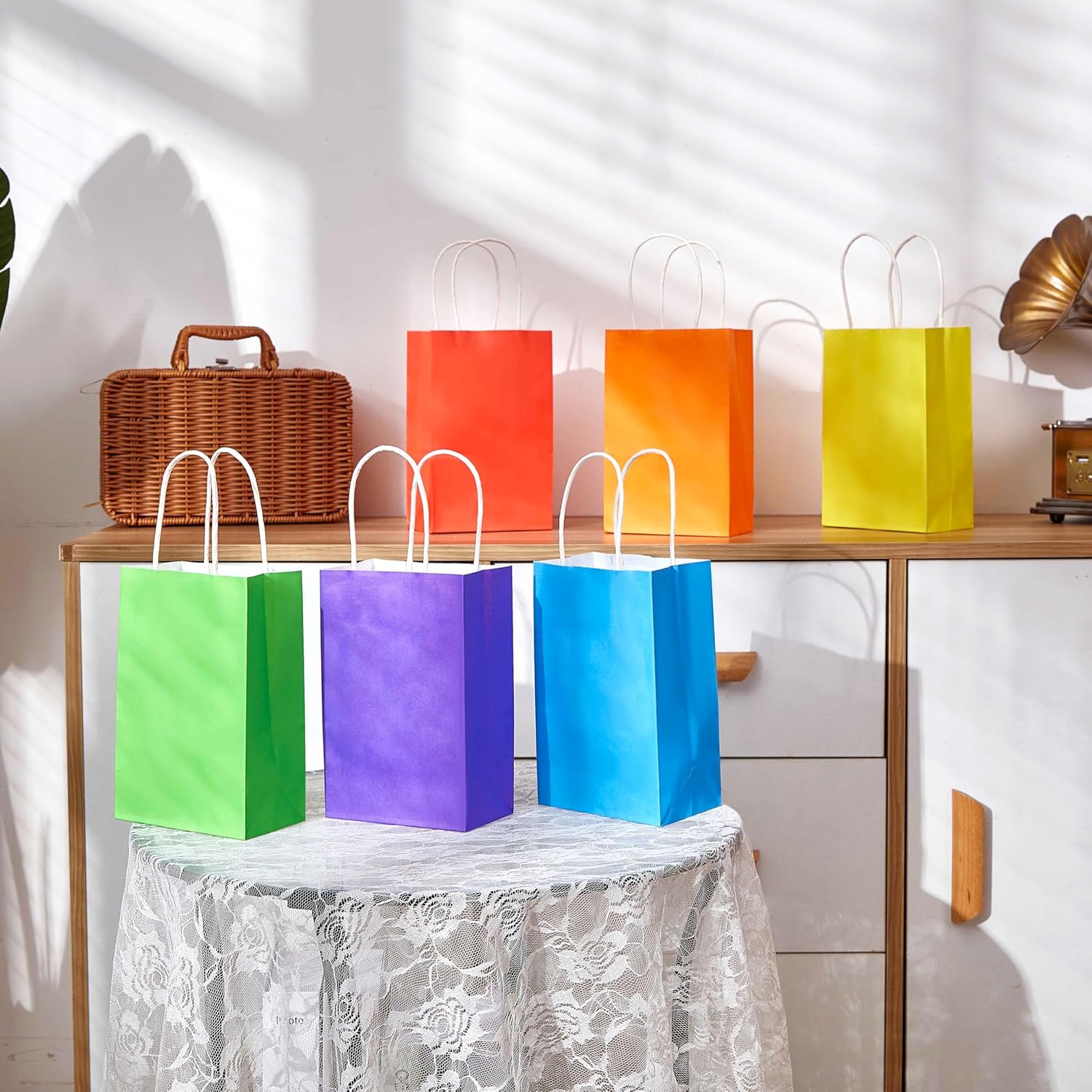 These 8″ colorful gift bags measure 7.9″ x 5.12″ x 3.15″, perfect for toys, snacks, candles, treats, party favors & small gifts.