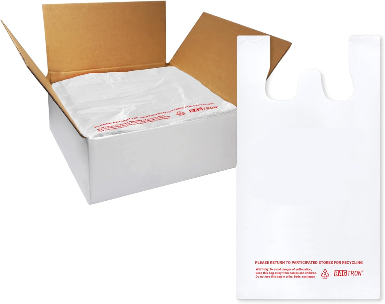 T-Shirt Carry-Out Bags, Disposable Plastic Bags with Handles for Shopping and Restaurant, 1/8 Barrel, 0.51 Mils, White, 10″ x 5″ x 18″, 1000 Count