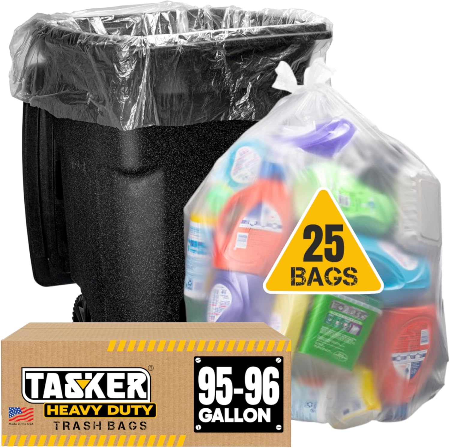 Tasker 95-100 Gallon Clear Trash Bags Heavy Duty | 25 Bags | Extra Large 96 Gallon Trash Bags Large Clear Can Liners, Large 90 Gal, 95 Gal, 96 Gal,100 Gallon Heavy Duty Trash Can Liners