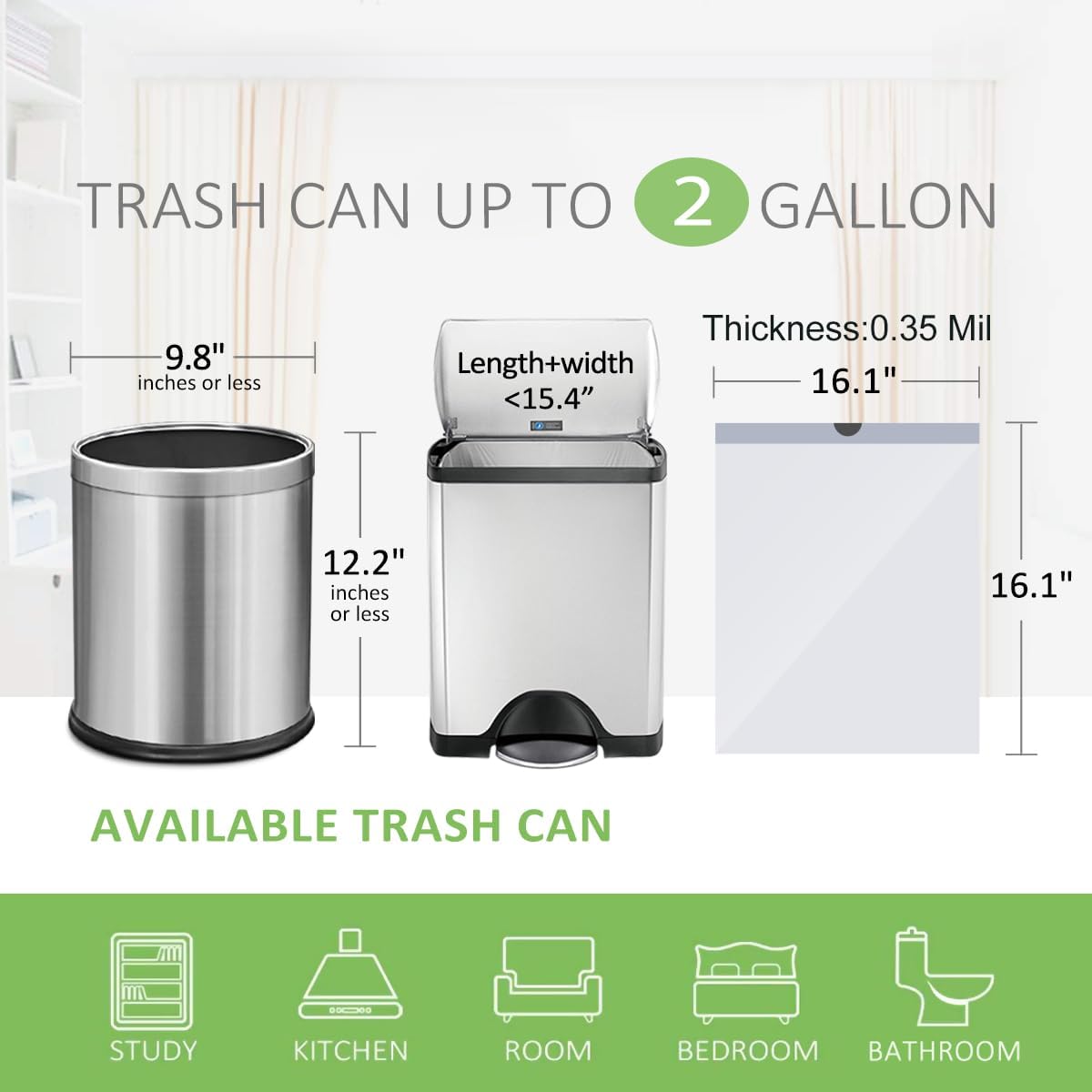 Convenient Size:2-gallon capacity with dimensions of 16.1″ W x 16.1″ L, arrive in multiple rolls, perfect for daily accessary needs. The seamless one-piece bottom design ensures leak-proof performance, preventing messy spills and stains.