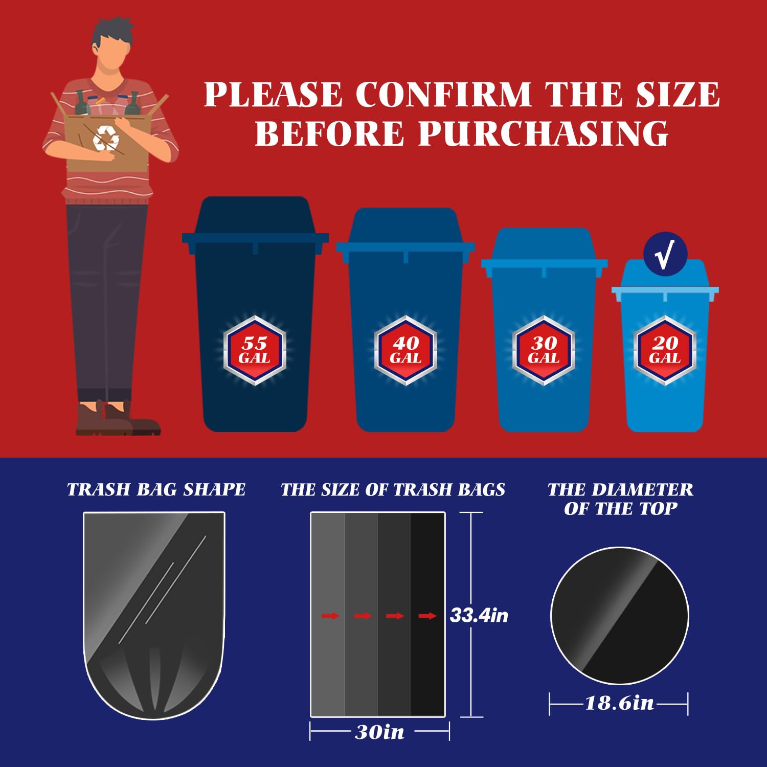 Extra Large 20-25 gallon capacity: Our 20 gallon trash bags are sized at 30 x 33″ to tackle large garbage loads,reducing the frequency of bag changes.These heavy duty trash bags are perfect for outdoor contractor use, easily fitting into outdoor drum can.With a whopping capacity of over 20 gallons, even the bulkiest waste is no match.