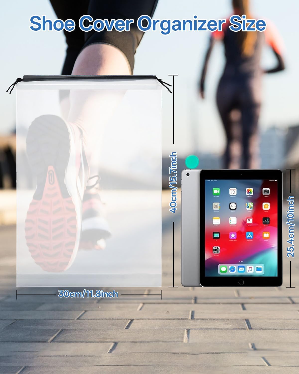 Upgraded Material: Crafted from reinforced PE material, our shoe bags resist tearing, offer waterproof protection, and are reusable. Dual drawstrings enable swift opening and closing for convenient organization