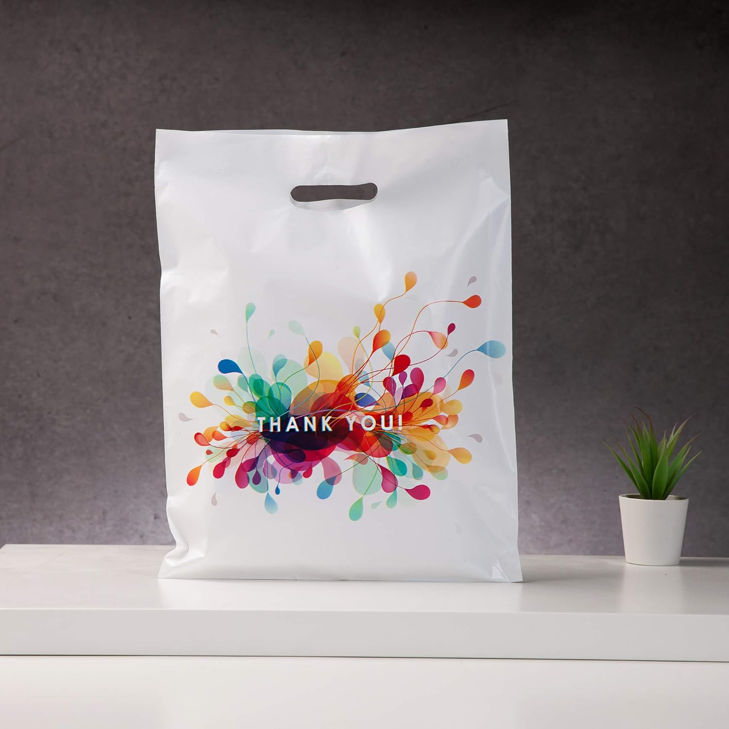 Thank You Bags for Business with Handles 12×15 (100 Count, White) – Plastic Shopping Retail Bags for T Shirts