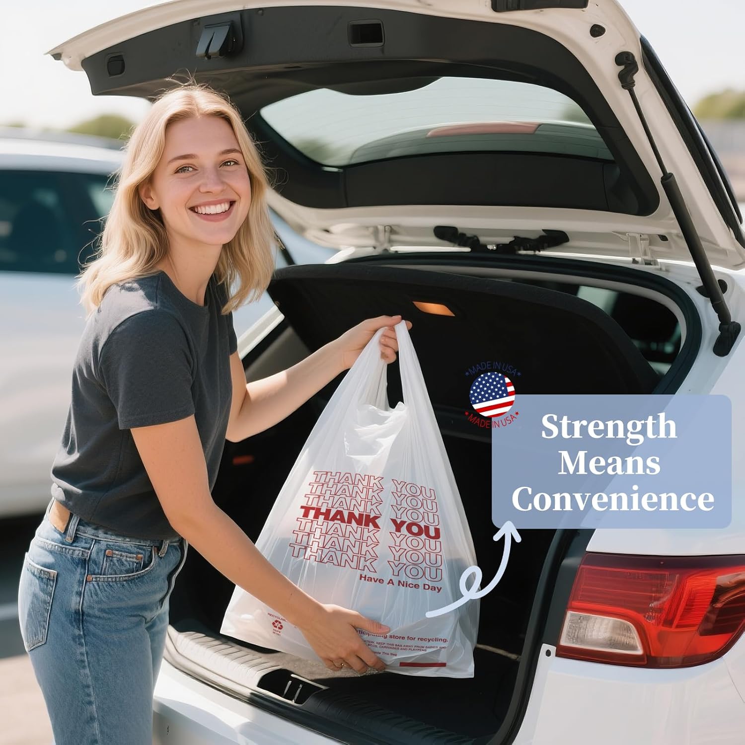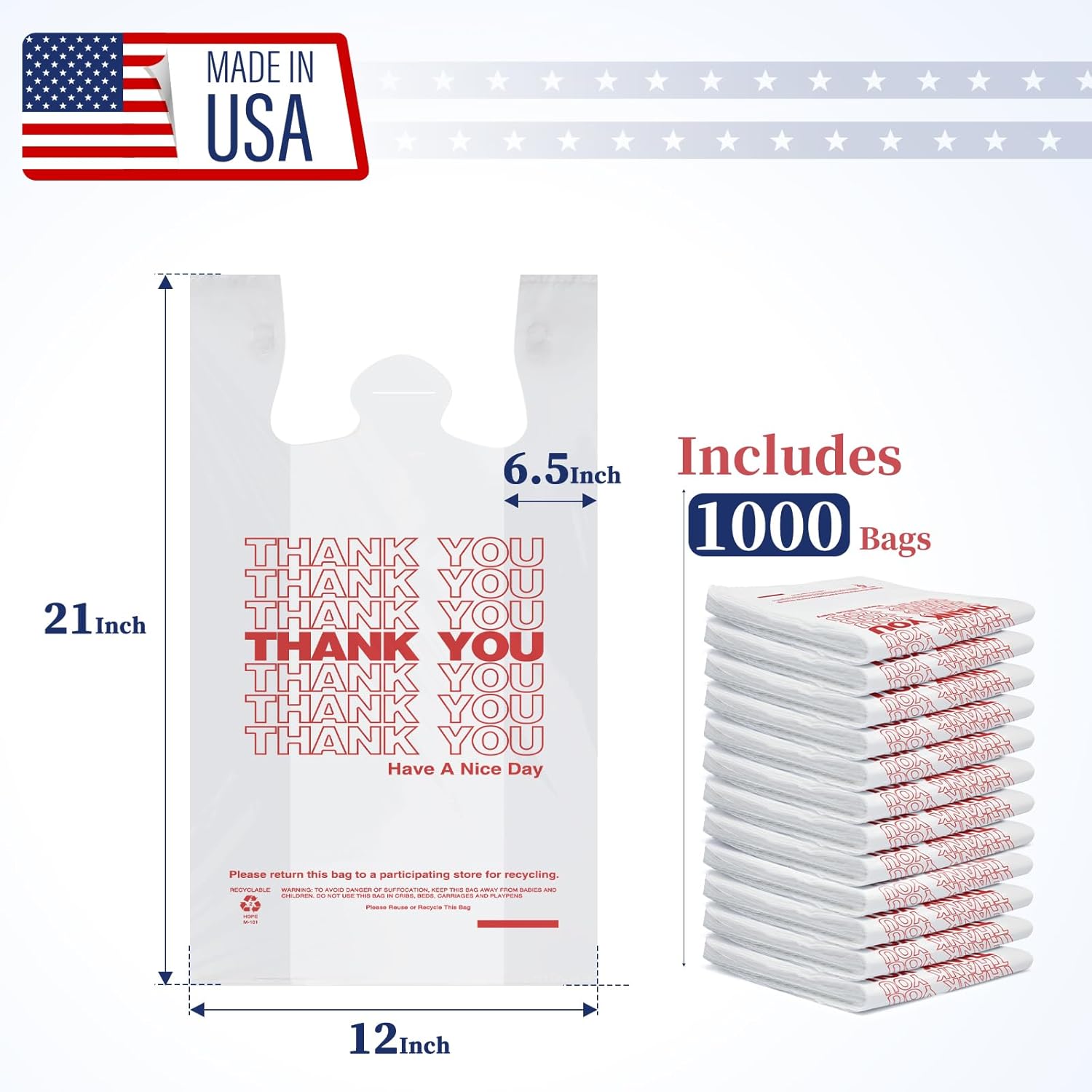 Thank You Plastic Bags1000 Count White With Handle 4 Gallon (11.5″ x 6.5″ x 21″), T-shirt Trash Bags Liner For Grocery, Shopping, Small Business, Restaurants (Made In USA)