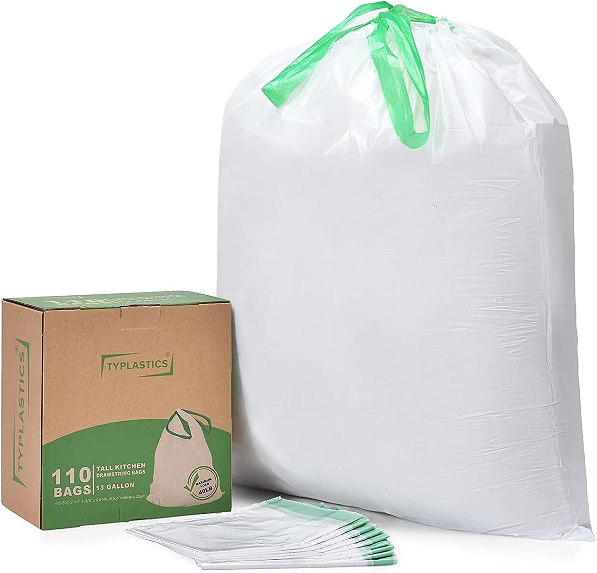 TYPLASTICS Tall Kitchen Drawstring Trash Bags, 13 Gallon, 110 Count