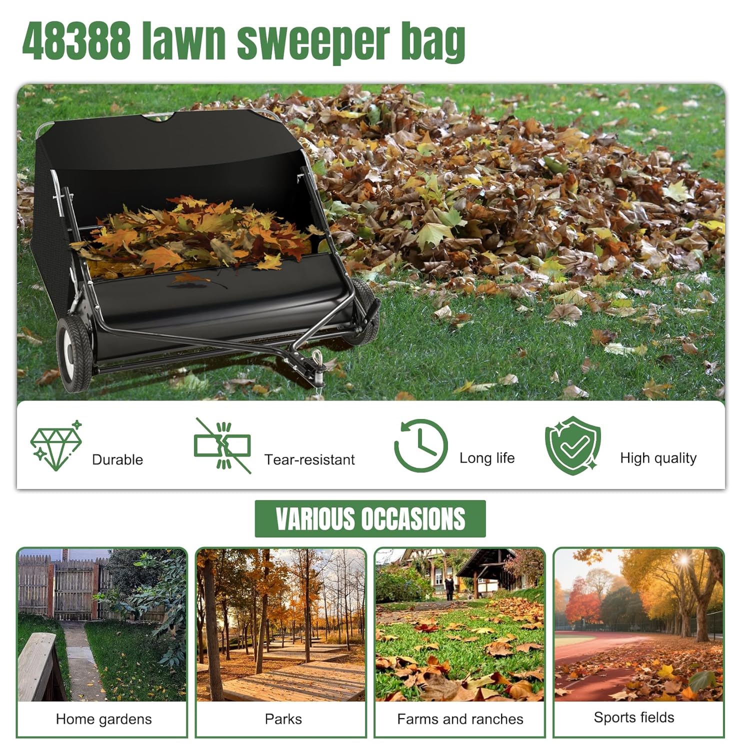 Upgraded 48388 Hopper Bag Assembly, Lawn Bag Fit for agri-Fab 42″ Tow Lawn Sweeper Parts, Leaf Sweeper Bag Replacement for 45-0320 Lawn Sweeper