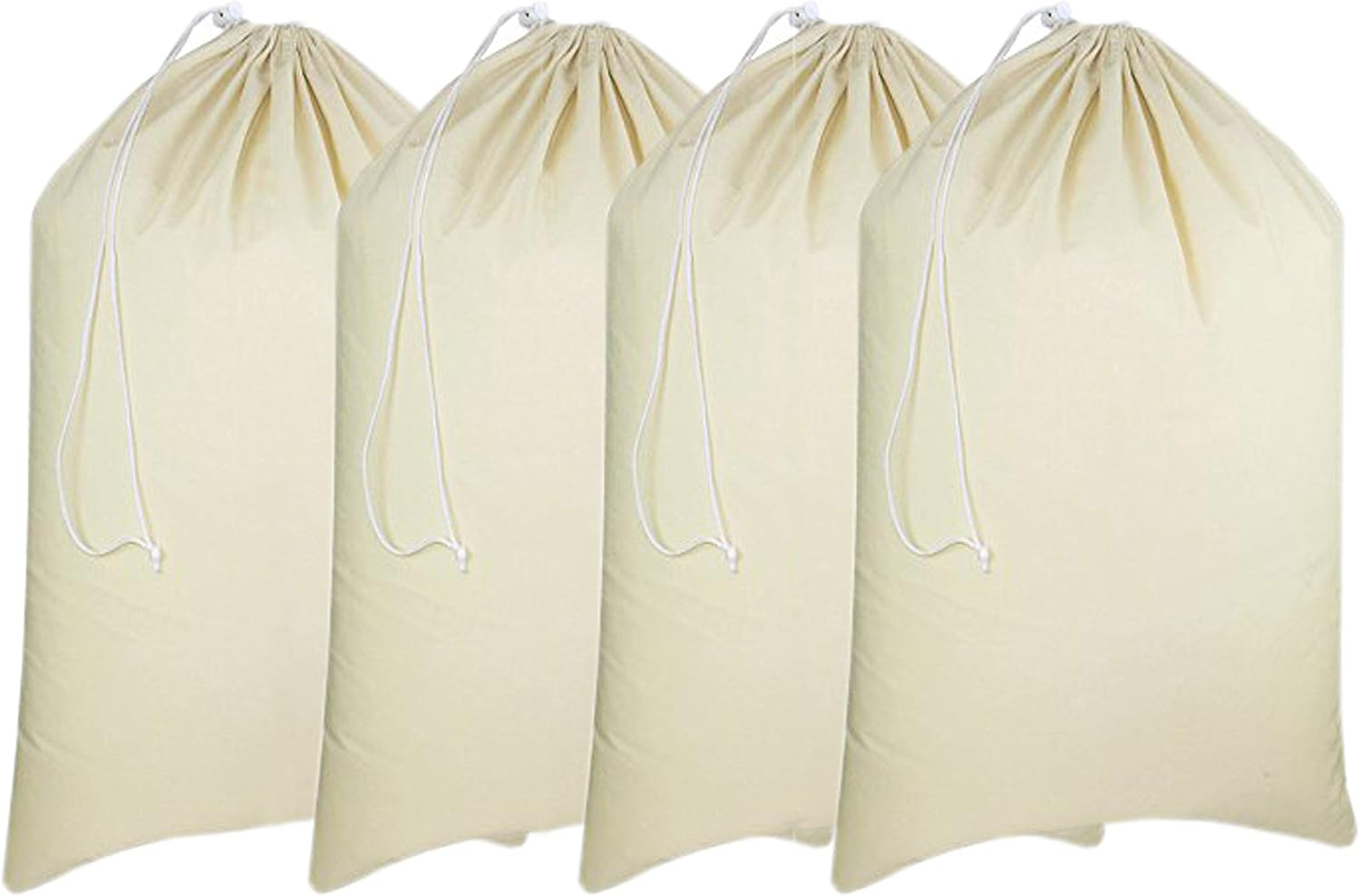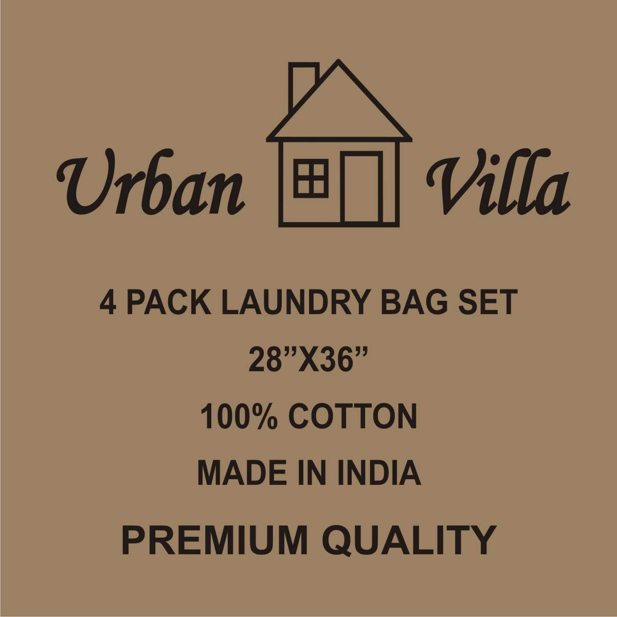 Urban Villa Laundry Bags 4-Pack 28”x36″ Extra-Large Cotton Canvas Heavy Duty Washable Durable Travel Laundry Sacks with Drawstring Closure Reusable Hamper Liners for Dirty Clothes Delicates & Lingerie