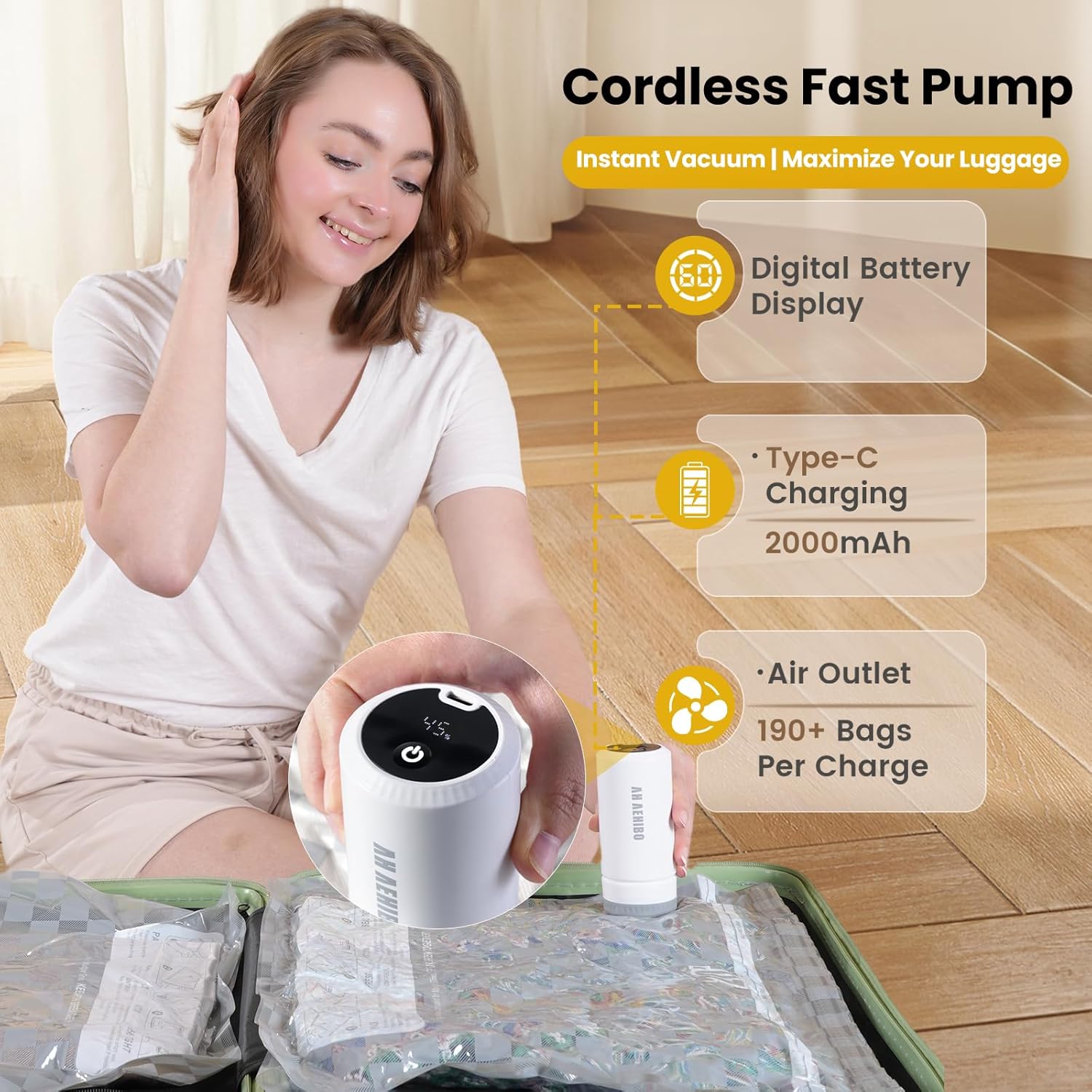 【No More Manual Pumping, No Outlet】:Meet your smart compression companion: a 5.78 oz cordless rechargeable pump (2000mAh) with real-time digital battery display and low-power alert, 190+ compressions per charge, and USB-C charging from any power bank or laptop. The accidental-press-proof button for true on-the-go convenience.