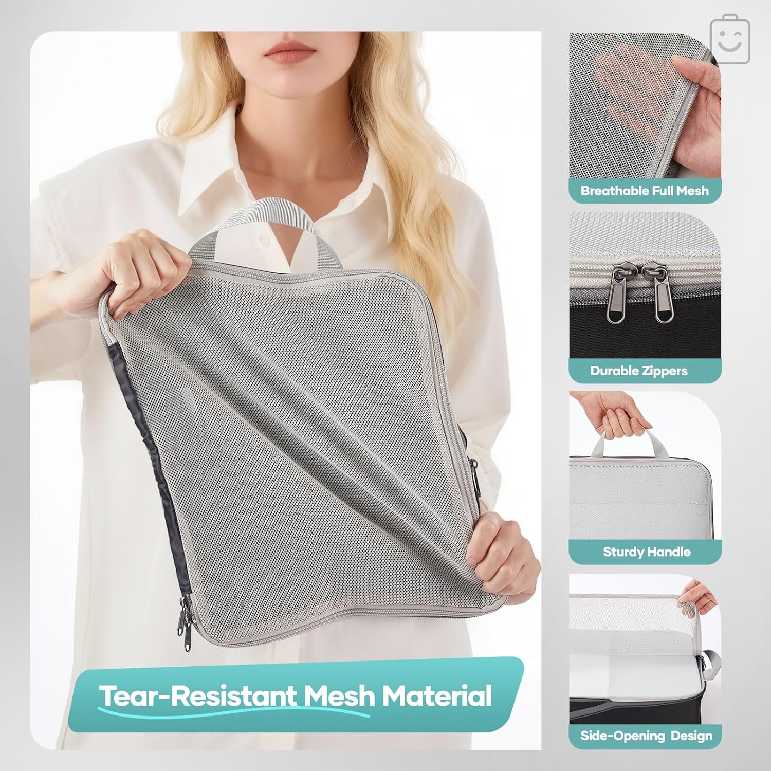 Lightweight Yet Durable – Made of tear-resistant polyester and mesh with reinforced stitching for long-lasting use. The full transparent mesh panel allows easy identification, while dual zippers and side openings enable smooth packing and access.