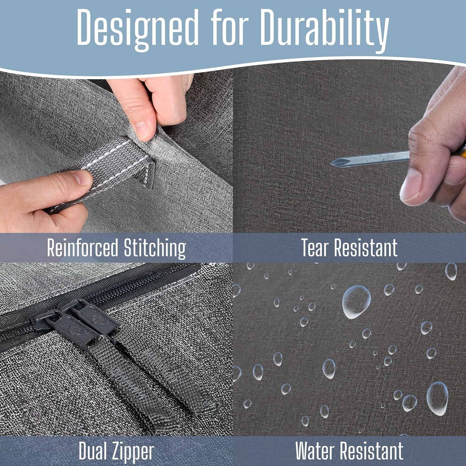 【REINFORCED HANDLES & ZIPPERS】Built for Repeated Use. Upgraded carrying handles and heavy-duty zippers are designed to withstand repeated moving and storage. A more reliable option than standard storage bags with zipper, packing bags, or wardrobe moving boxes.