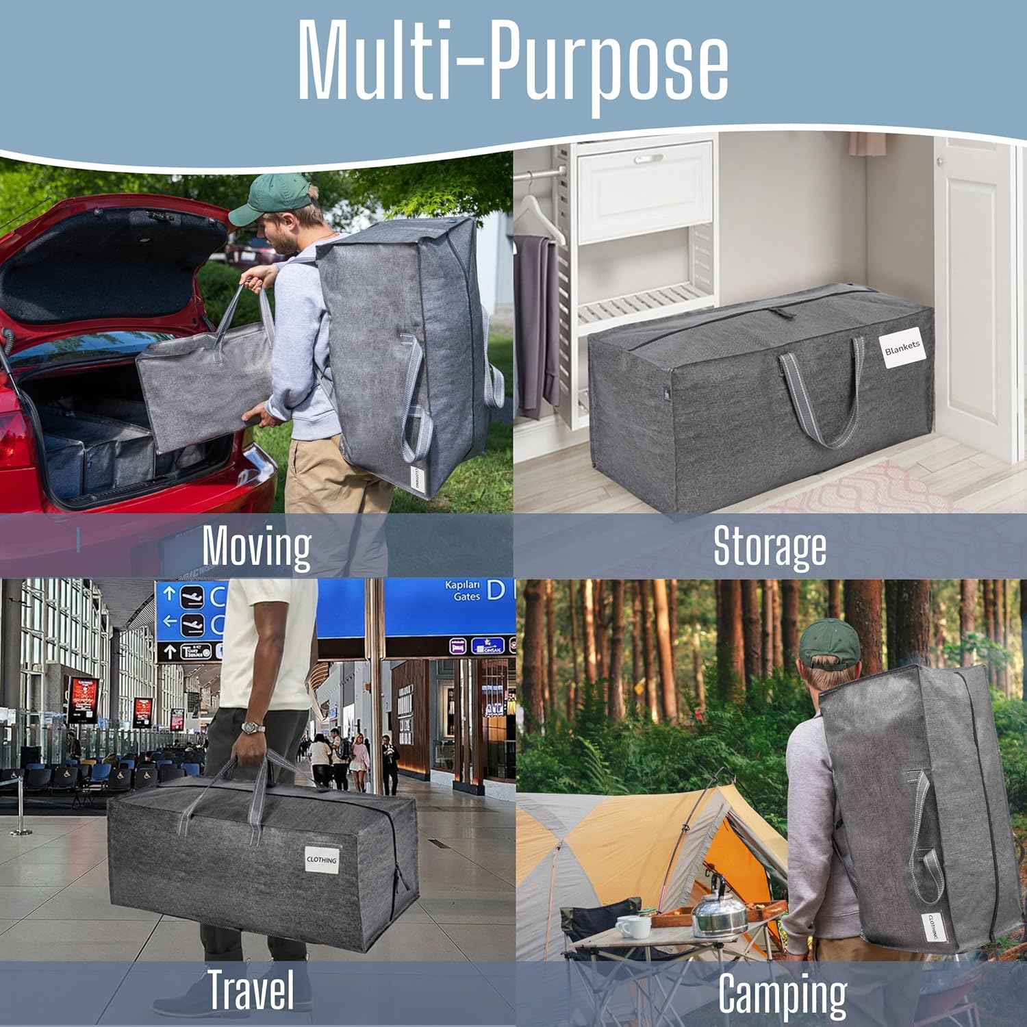 【MULTI-PURPOSE MOVING & STORAGE】One Bag, Many Uses. Designed for both moving and long-term storage. Works as storage bags, storage containers, storage totes, and clothes storage bags, making it easy to move once and store without repacking.