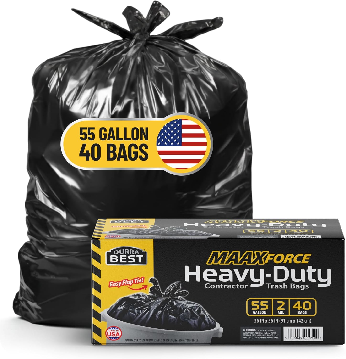 55-60 gal heavy duty capacity – These heavy duty trash bags are designed to hold more garbage and accommodate large volumes of waste, which means less bags used and fewer trips to the dumpster. Contractor bags perfect for job sites, construction, and yard waste bags.
