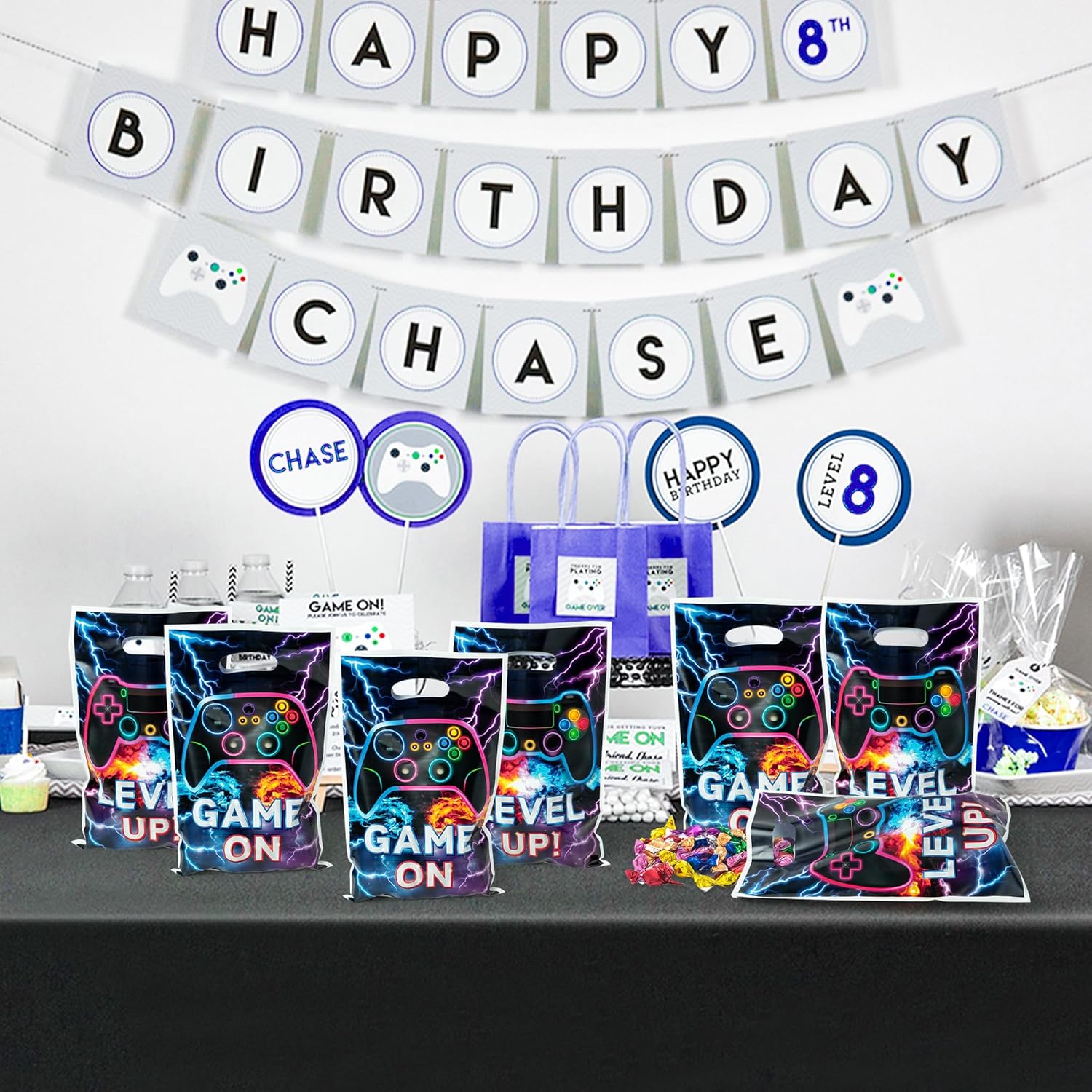 FIT SIZE: Each cool video game birthday plastic bag measures approximately 6.3 x 10 inches. Perfect for party favors or small gifts, you can use them to hold cookies, candies, cookies, chocolates, cakes, prizes, crafts, and a variety of snacks or gifts. Pair these candy bags with your party supplies for an eye-catching atmosphere.