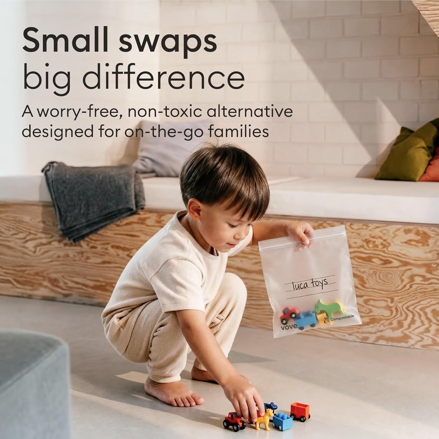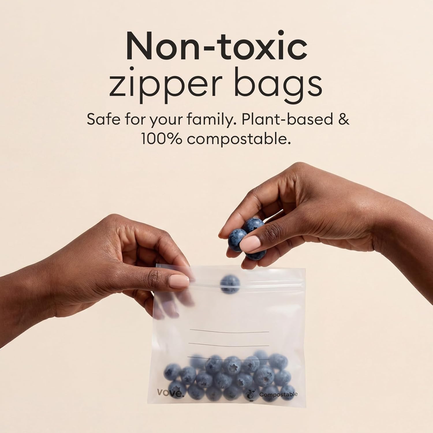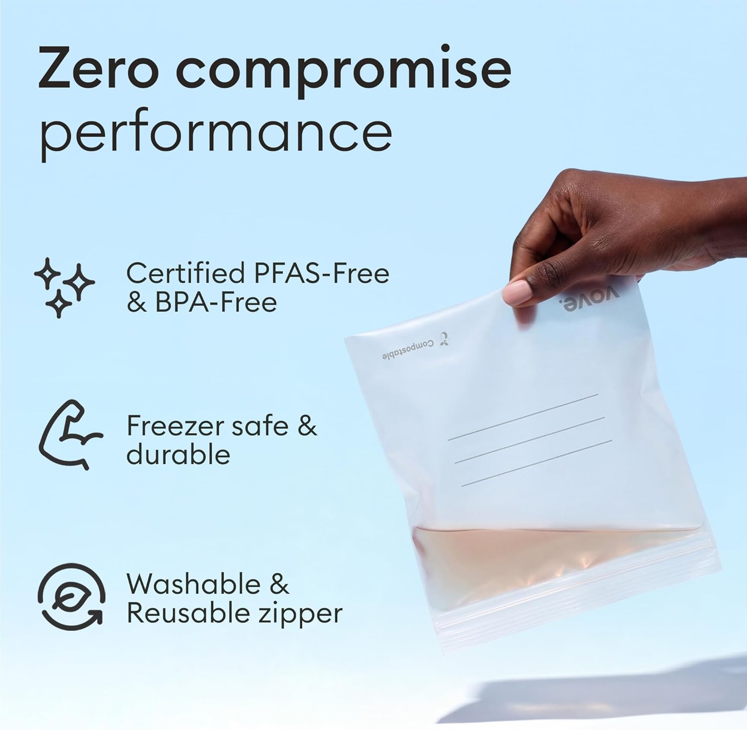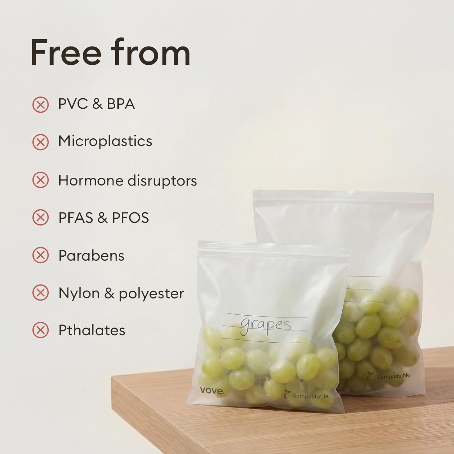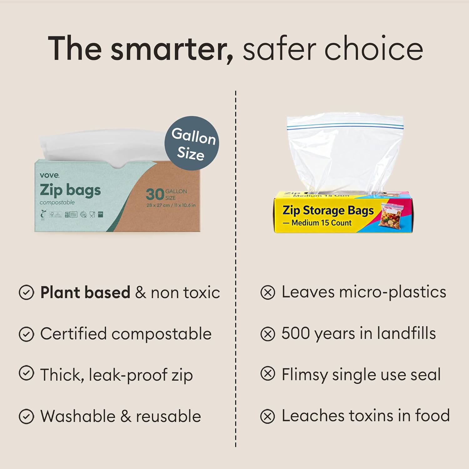 Vove Compostable Gallon Bags 30 Ct – PFAS-Free, BPI Certified, Freezer Safe with Airtight Seal for Meal Prep & Bulk Storage, Plant-Based