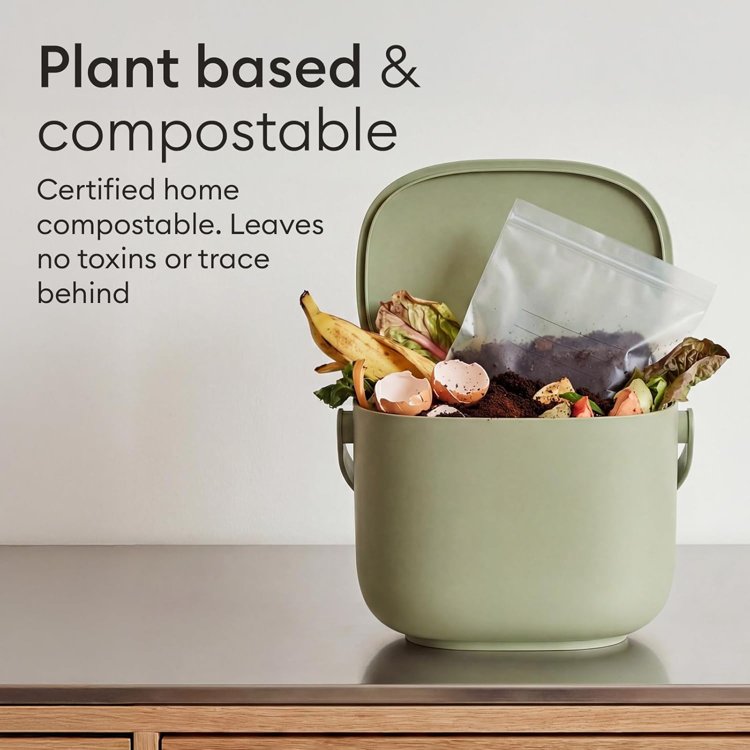 HEAVY-DUTY, PLASTIC-FREE: Certified compostable (BPI #10529044-1), made from plant-based PLA/PBAT for large-capacity, eco-conscious storage.