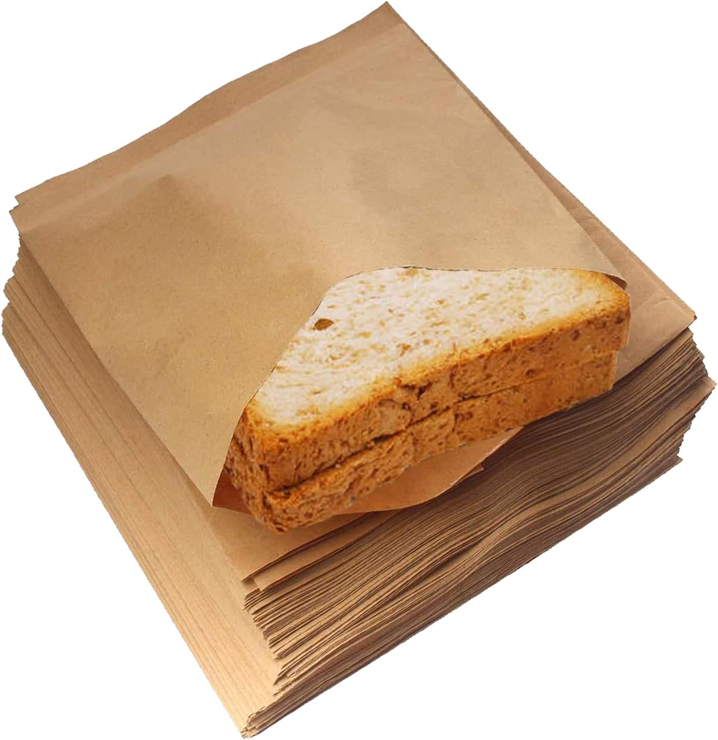 WAYDA 100 Pack Sandwich Bags Kraft Paper Bakery Bags Unbleached Cookies Bags for Pastry, Hamburger, Bagel, Toast, Snacks, Treats and Party Favors