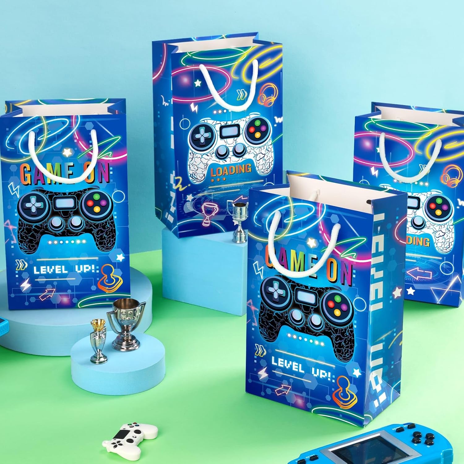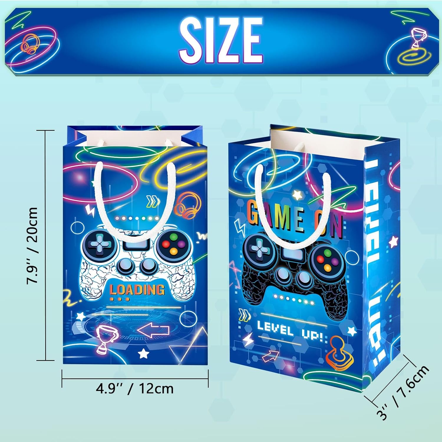 WERNNSAI Video Game Party Favor Bags – 16 PCS Blue Game Birthday Decorations Gift Bags Gaming Party Supplies Video Game Goodie Bags with Handle for Birthday Supplies