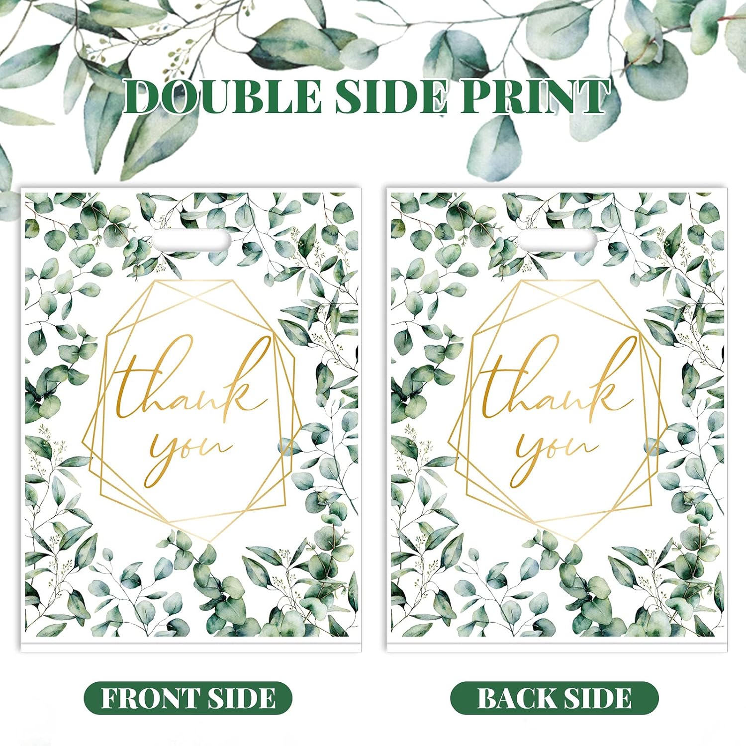 Exquisite Design – Our thank you bag are printed with green leaves and gold word “thank you” in the central part, with a die cut handle that make you easy to hold, very good-looking and practical.