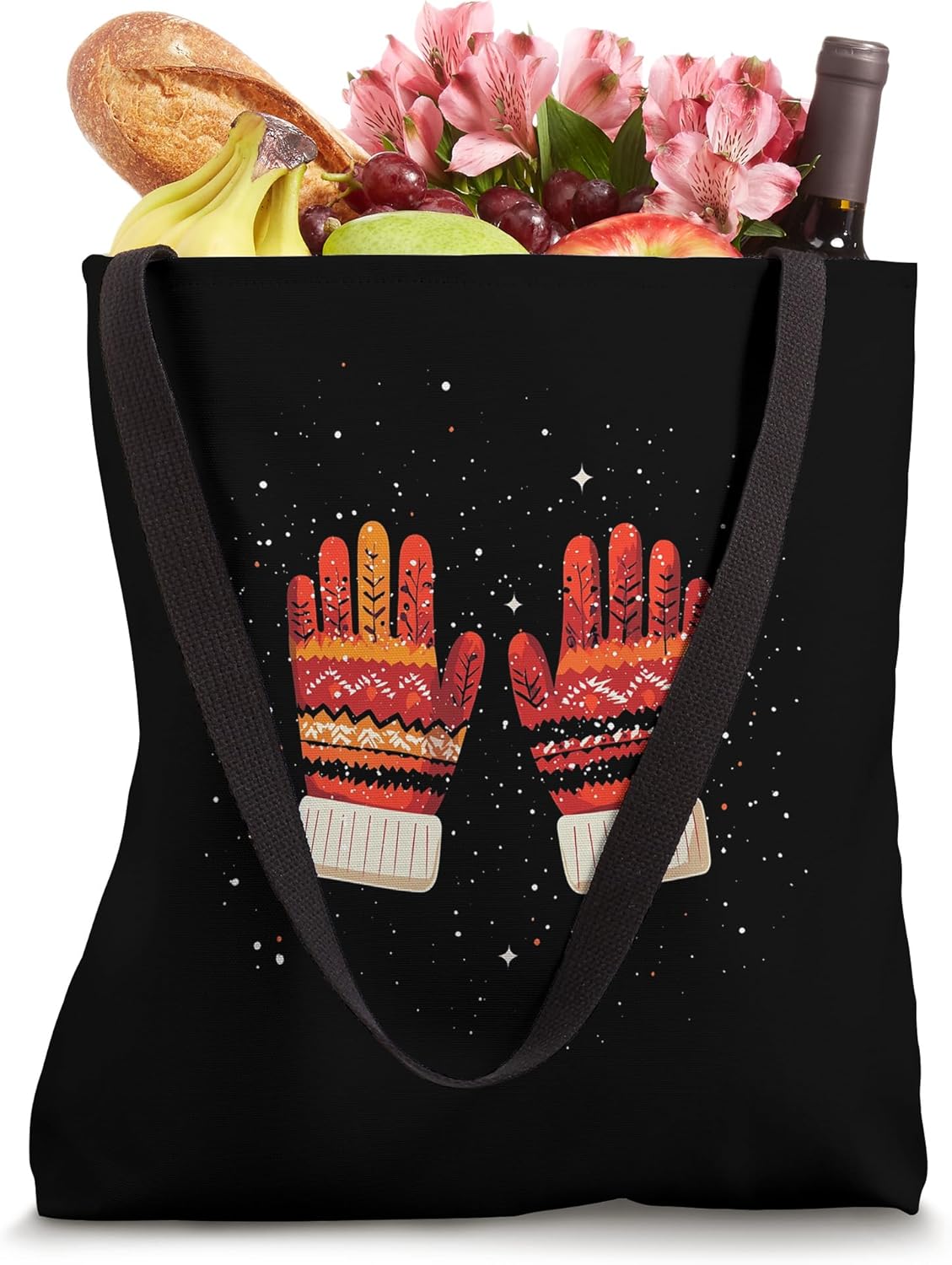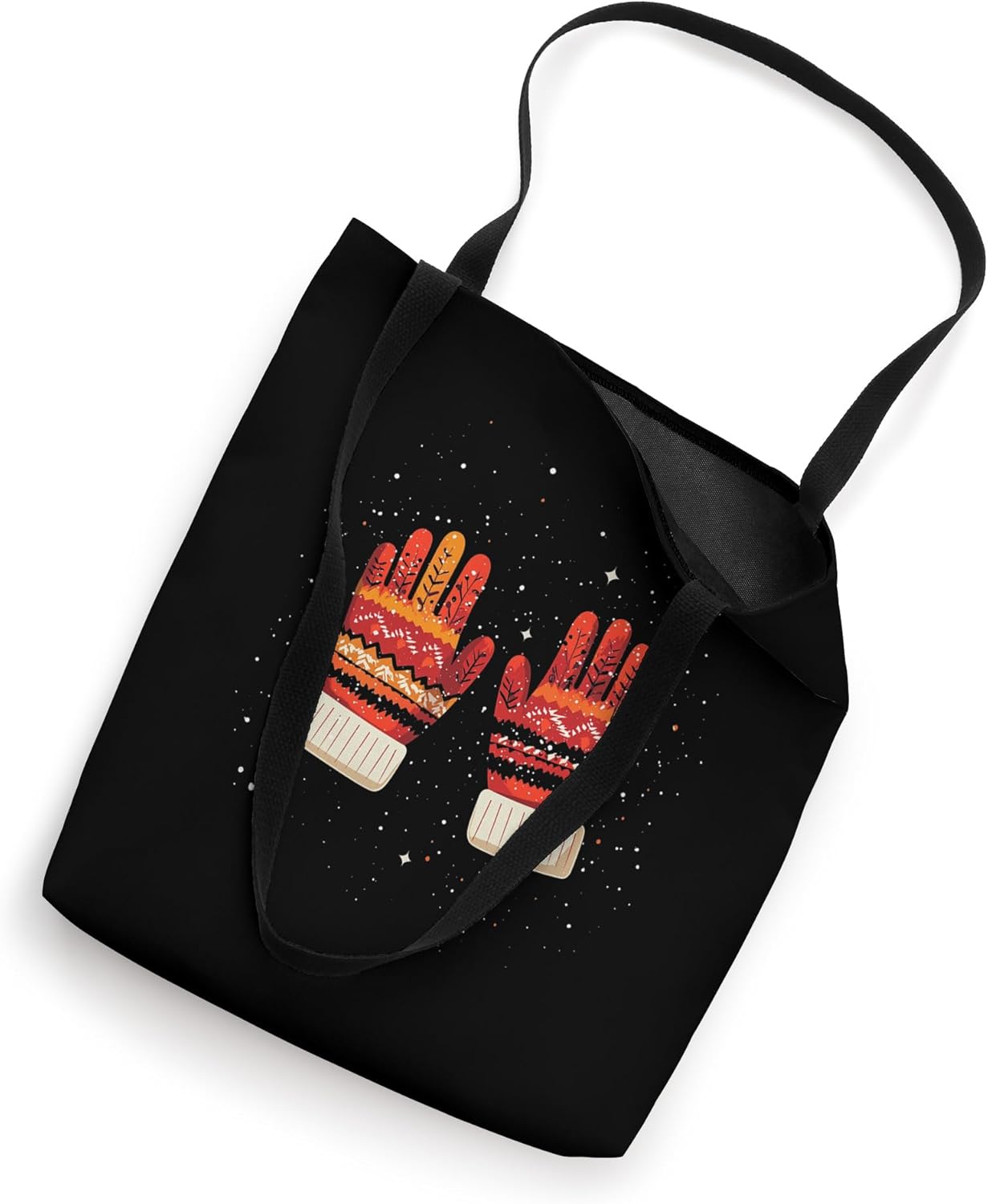 Winter Gloves. Colorful winter gloves with intricate patterns and a cozy vibe, set against a black background with a starry motif. Ideal for a festive and warm winter accessory.