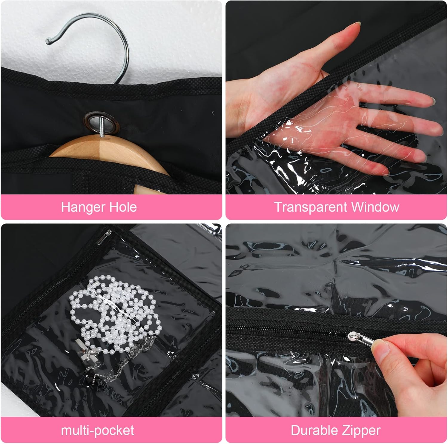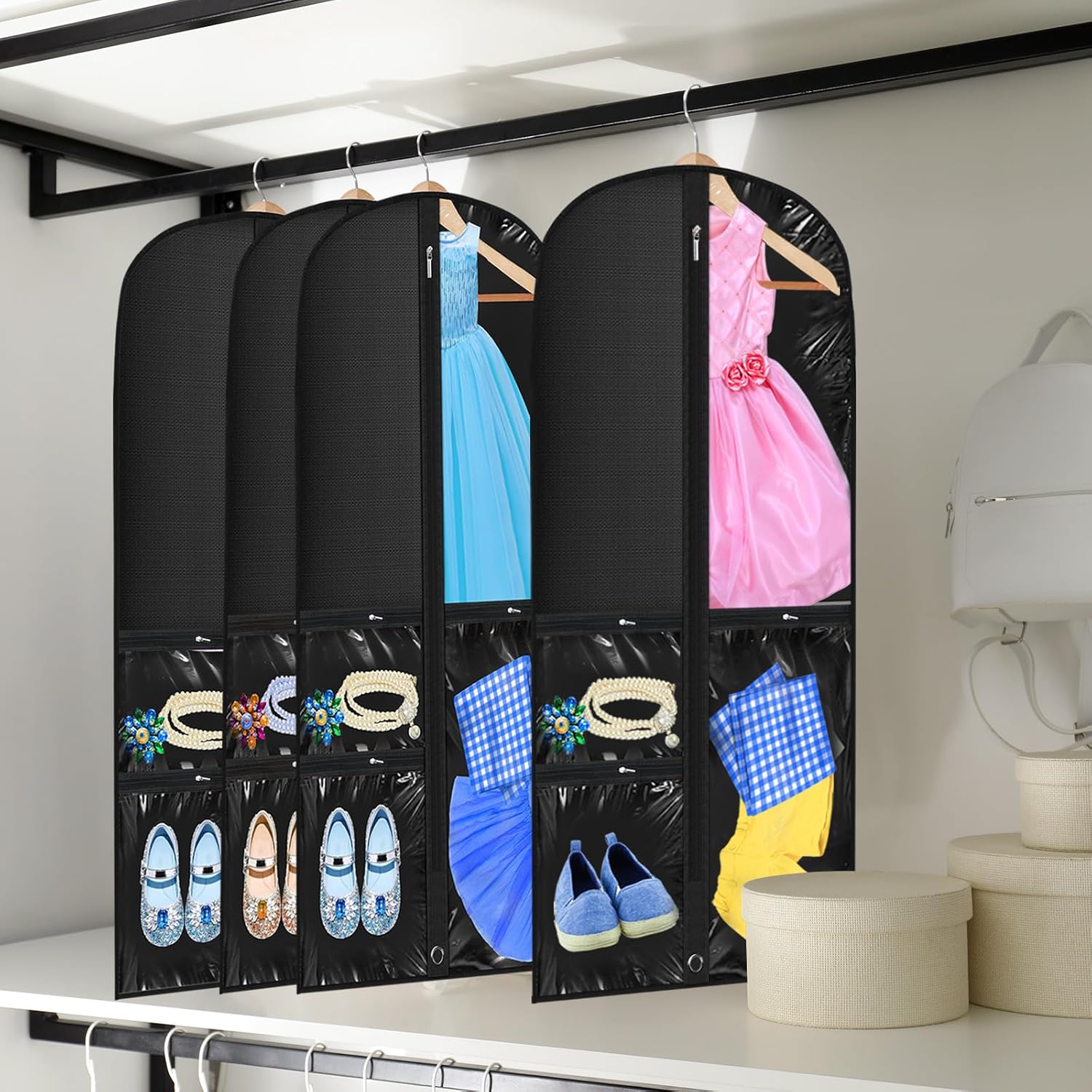 Convenient Pockets: these costume garment bags with pockets feature delicate workmanship, designed with several pockets, providing you enough space to store some stuffs, such as belts, headband, bags, hats and so on, bringing you much convenience
