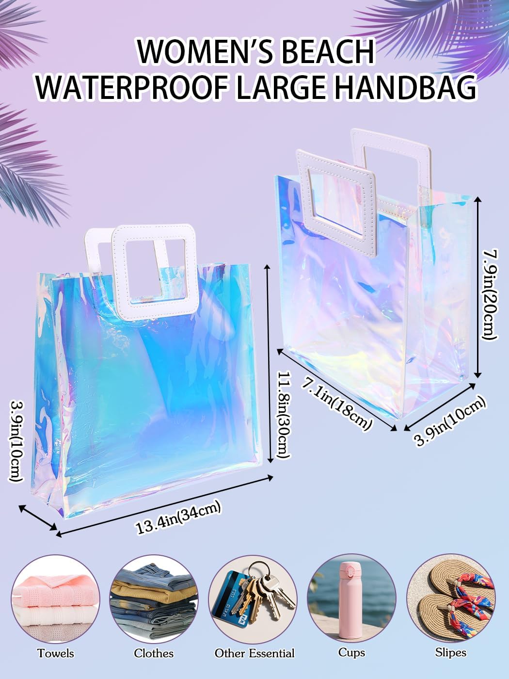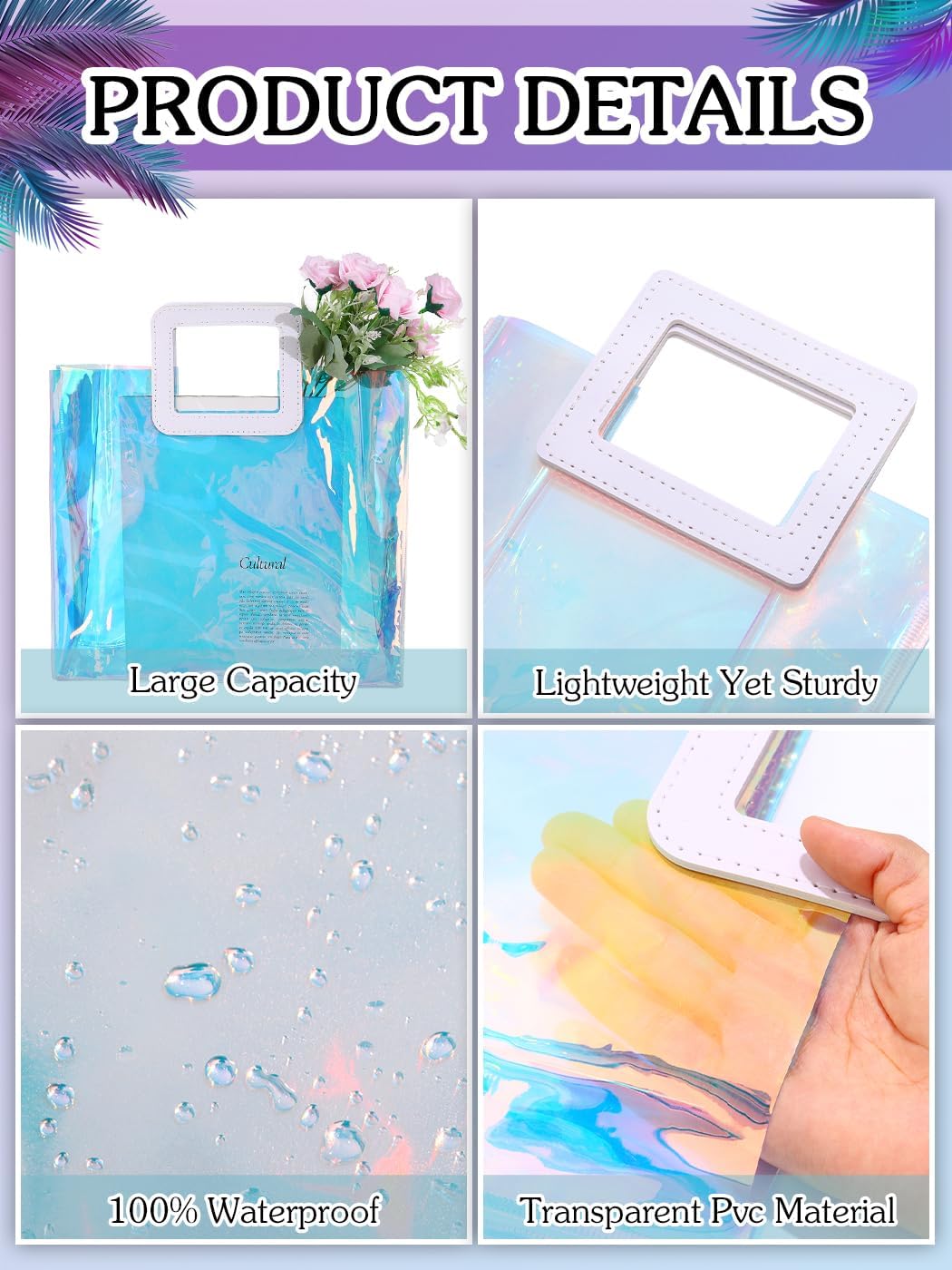They are transparent with an appealing iridescent color, giving them a unique and dazzling effect; These handbags will surely stand out and grab attention wherever you go.