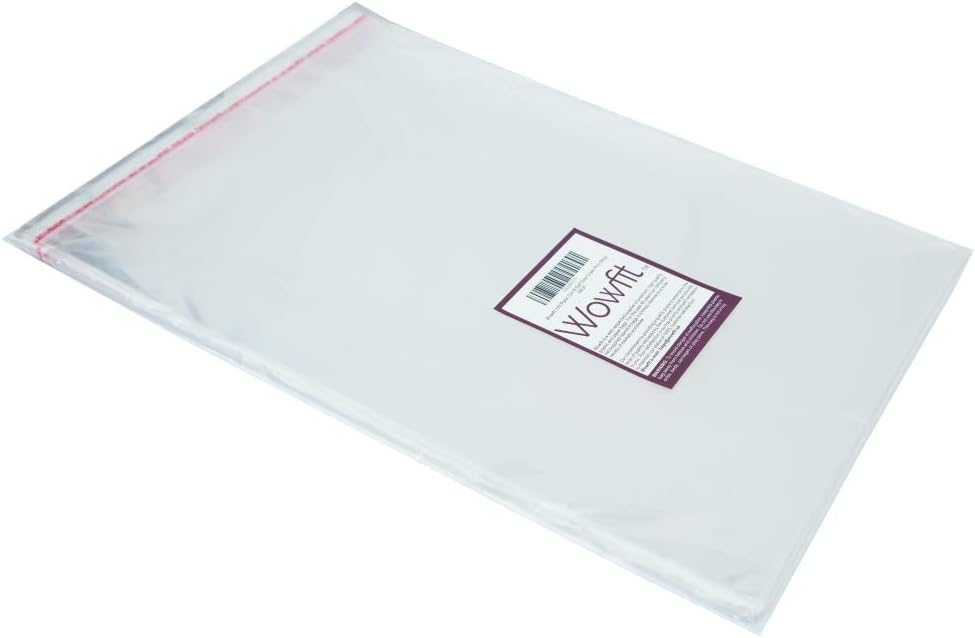 Wowfit 100 Count 12×16 Inch Clear Cellophane Plastic Bags, Resealable Self-Sealing Cello Bags Great for Packaging Clothing, Shirts, Decorative Wrappers, Party Favors, Artwork and More
