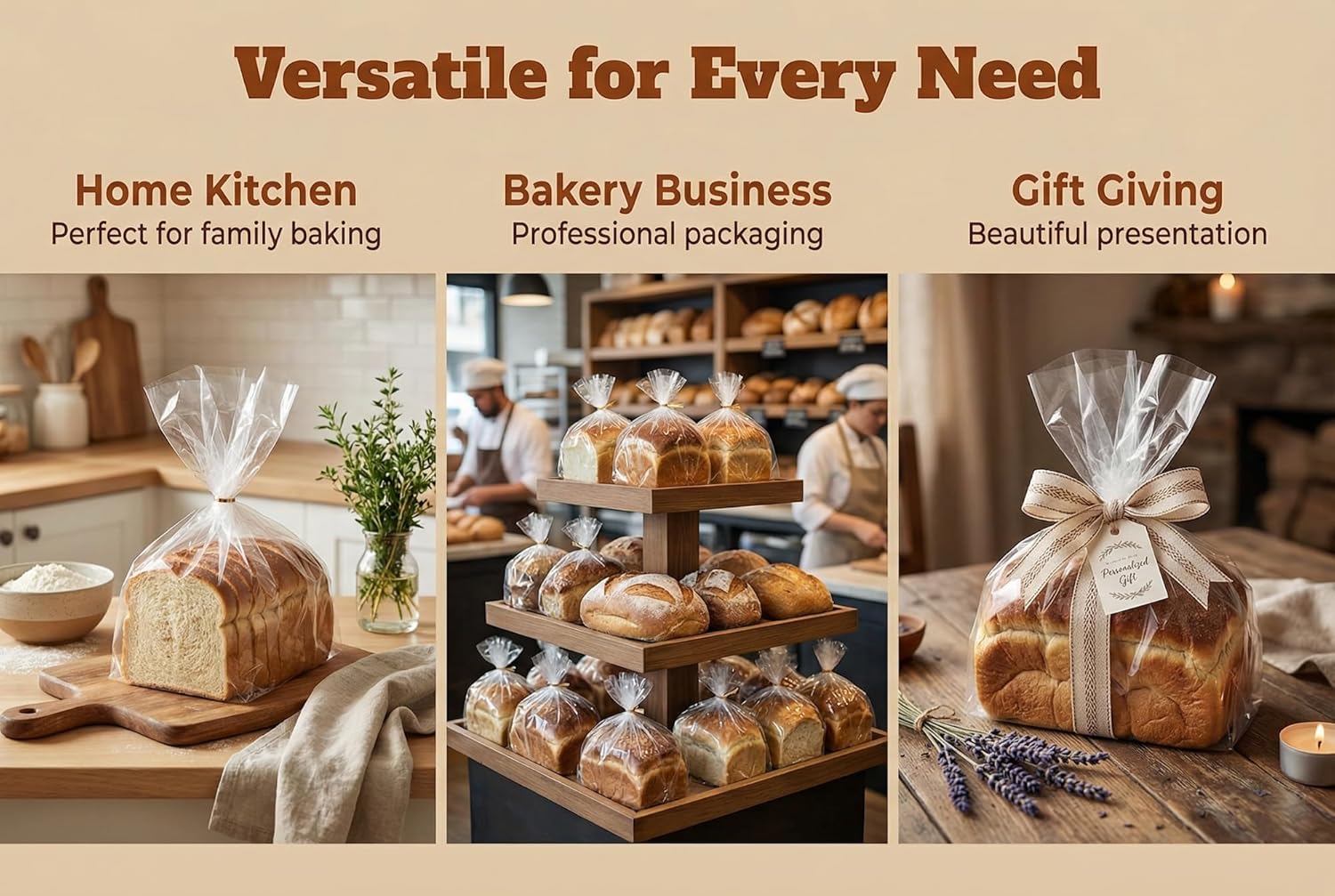 Keep your bread fresh: With our bread loaf packaging bags’ having a thickness of 1 mil, they’re perfect for keeping your homemade or bakery fresh loaves of bread perfectly fresh for longer than other thinner and less durable bread bags