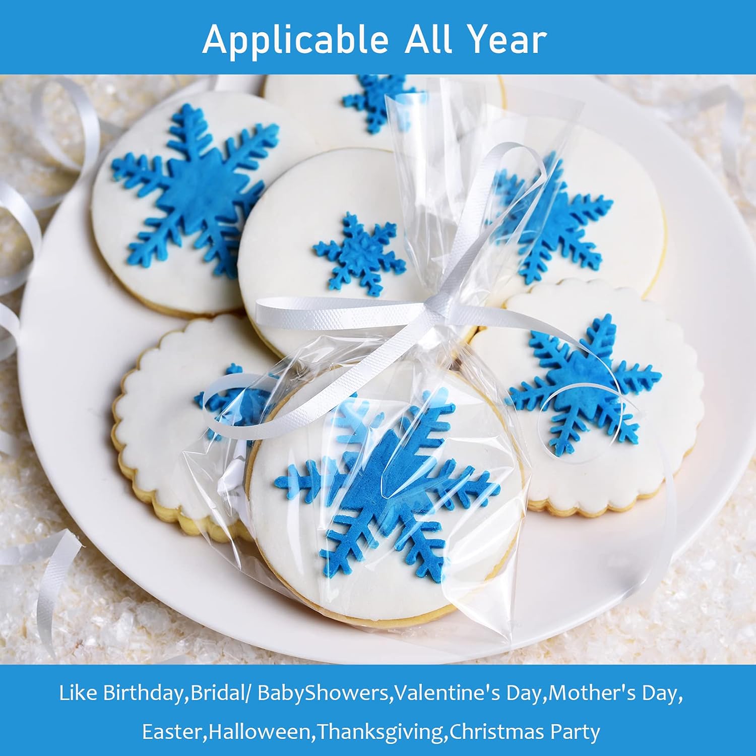 Crystal Clear Design: These transparent cookie bags allow your treats to shine! The crystal-clear finish ensures that your cookies, chocolates, and other sweets are beautifully showcased, making them suit for gift giving and party favors