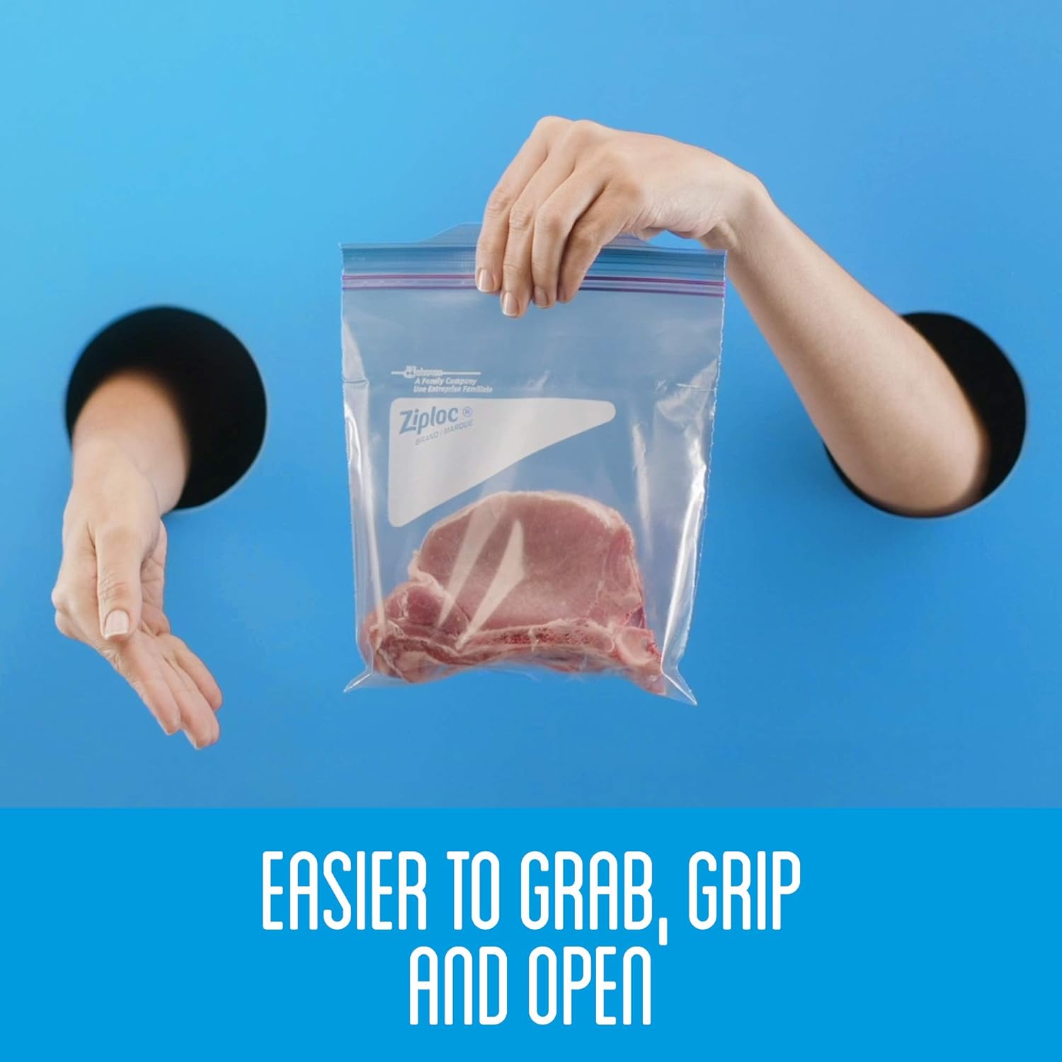 Ziploc brand Freezer Bags helps provide unbeatable freezer protection from freezer burn with new Grip ‘n Seal technology. Our triple system seal features an extended tab, new, easy grip texture and a double zipper. The extended tab and new, easy grip seal make it easier to open and close the bag, while the airtight double zipper ensures that each plastic freezer bag blocks out air, which means less wasted food and more money saved.