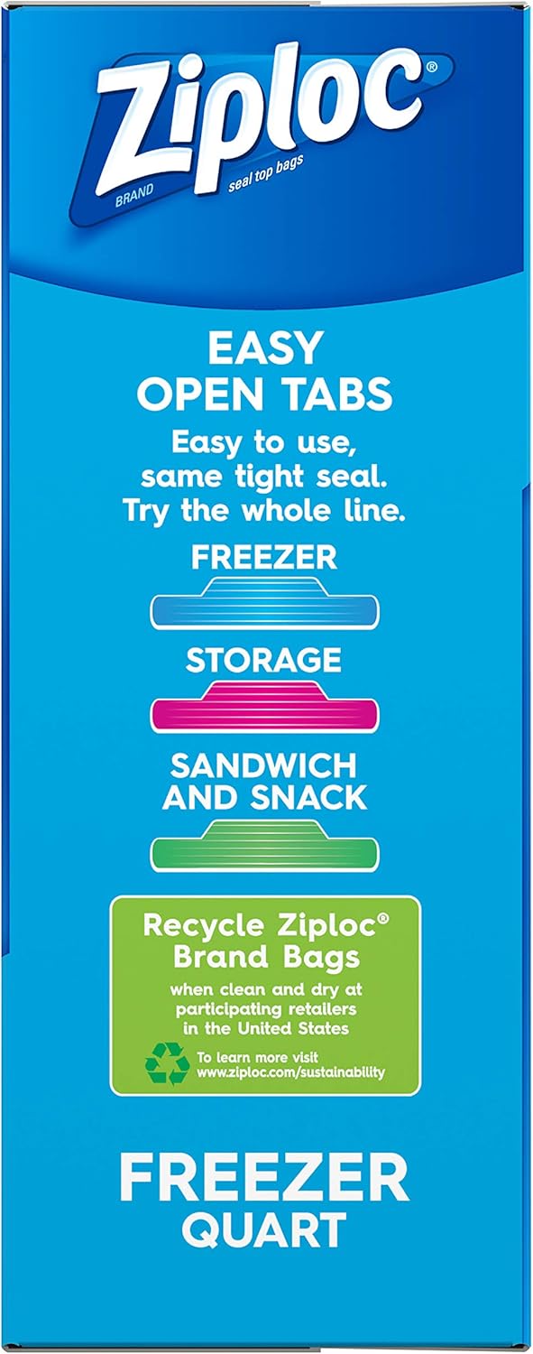 Ziploc Freezer Bags with New Grip ‘n Seal Technology, Quart, 38 Count, Pack of 3 (114 Total Bags)