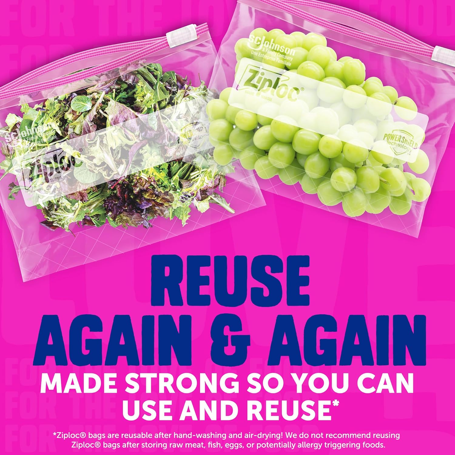 Ziploc Quart Food Storage Slider Bags, Power Shield Technology for More Durability, 42 Count
