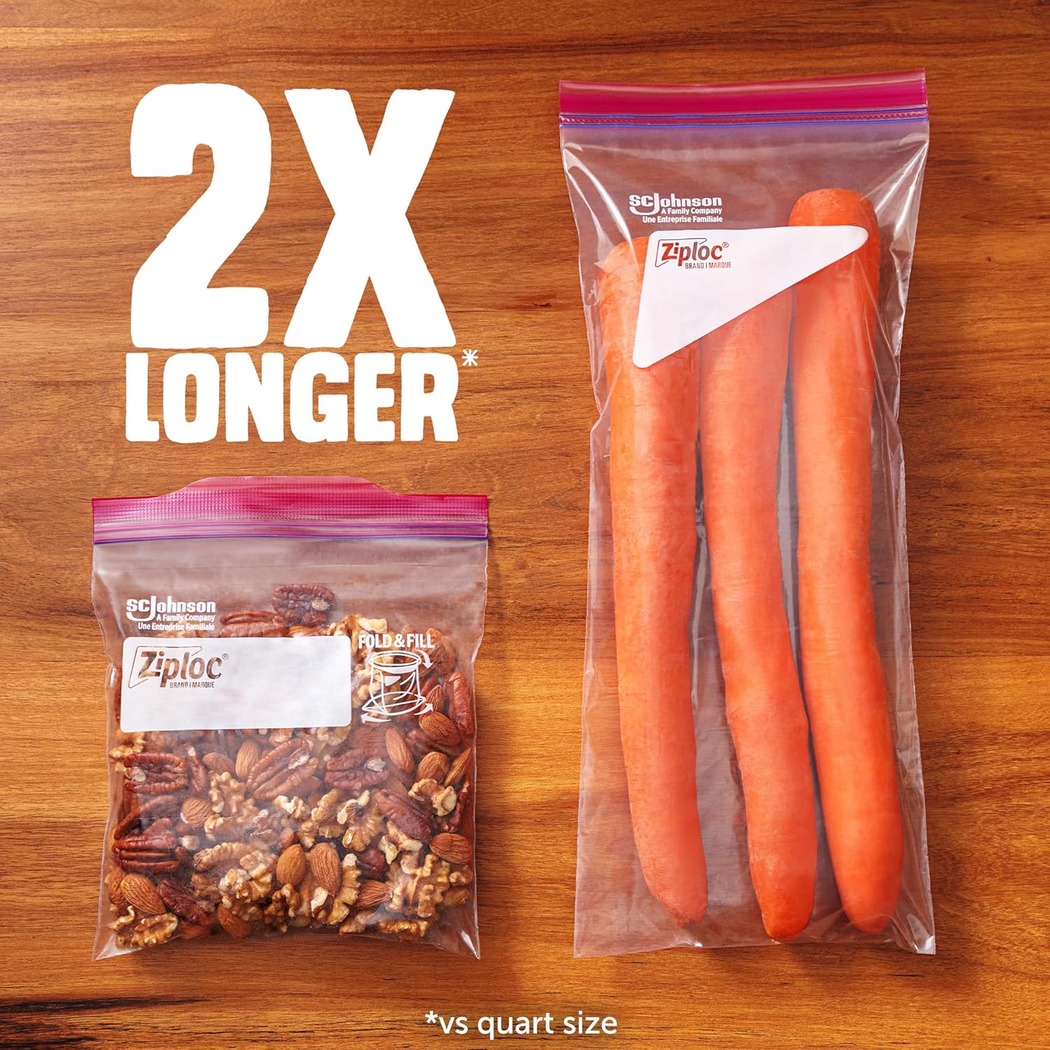 2X Longer: Ziploc Tall Storage Bags are 2X longer than quart size storage bags