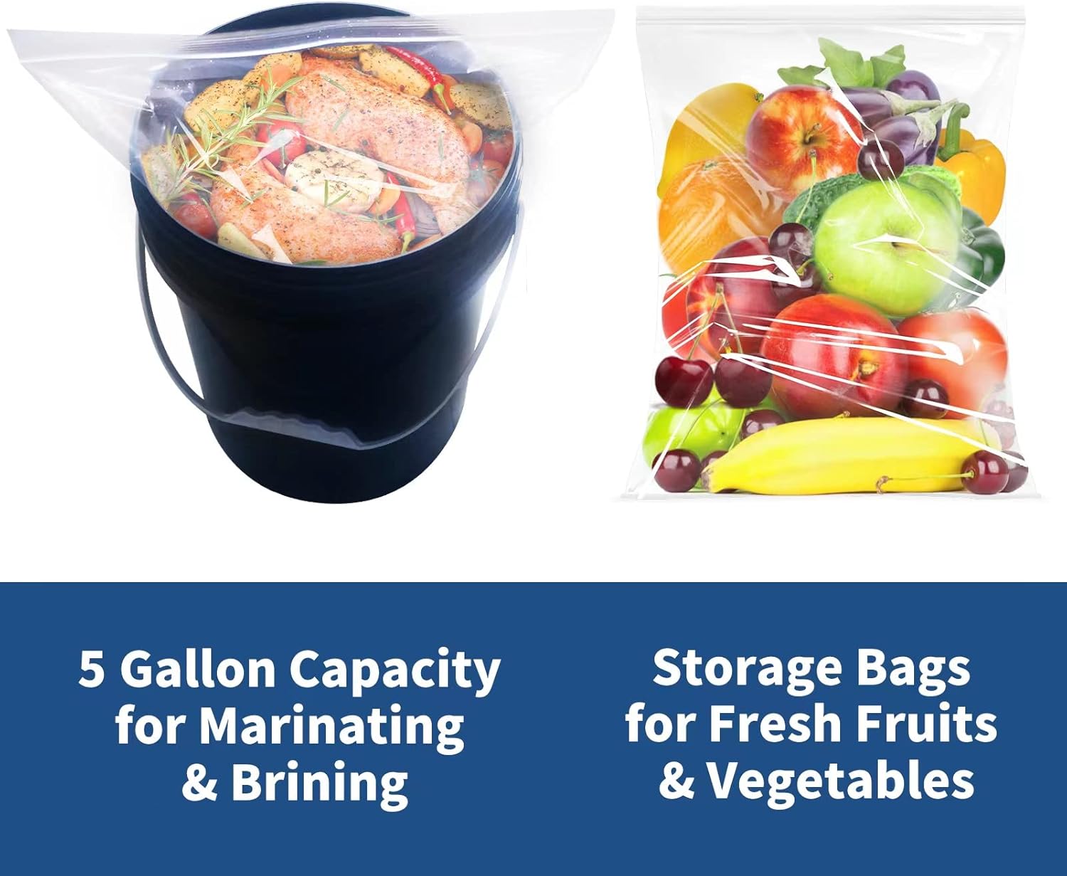 [Thick Food Bag for Brining & Marinating] Saving your time for preparing family party or holiday dinner.The food storage bags are sturdy and large enough to brining or marinding meat, turkey, and beef with sauce, prevent liquid leaking or spilling out with the zipper closure. A real in need for the coming Thanksgiving, Christmas, and New Year!