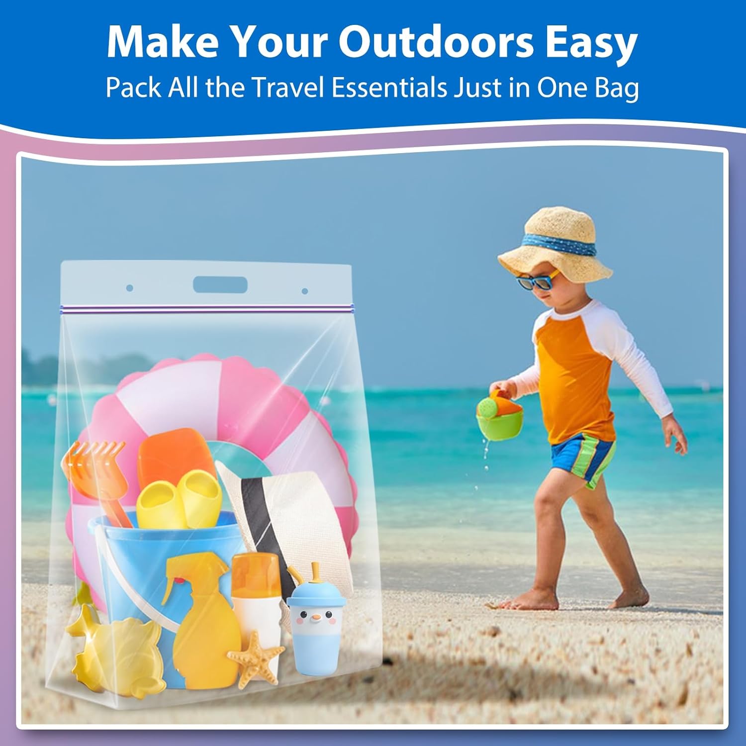 Zipper Storage Bags with Handle and Bottom, Pack of 6, 3 Gallon Heavy Duty Clear Handy Plastic Bag, 16″x18″ Reusable Large Zip Storage Bag for Sports, Travel, Moving and Clothes, 3-Mil Thick