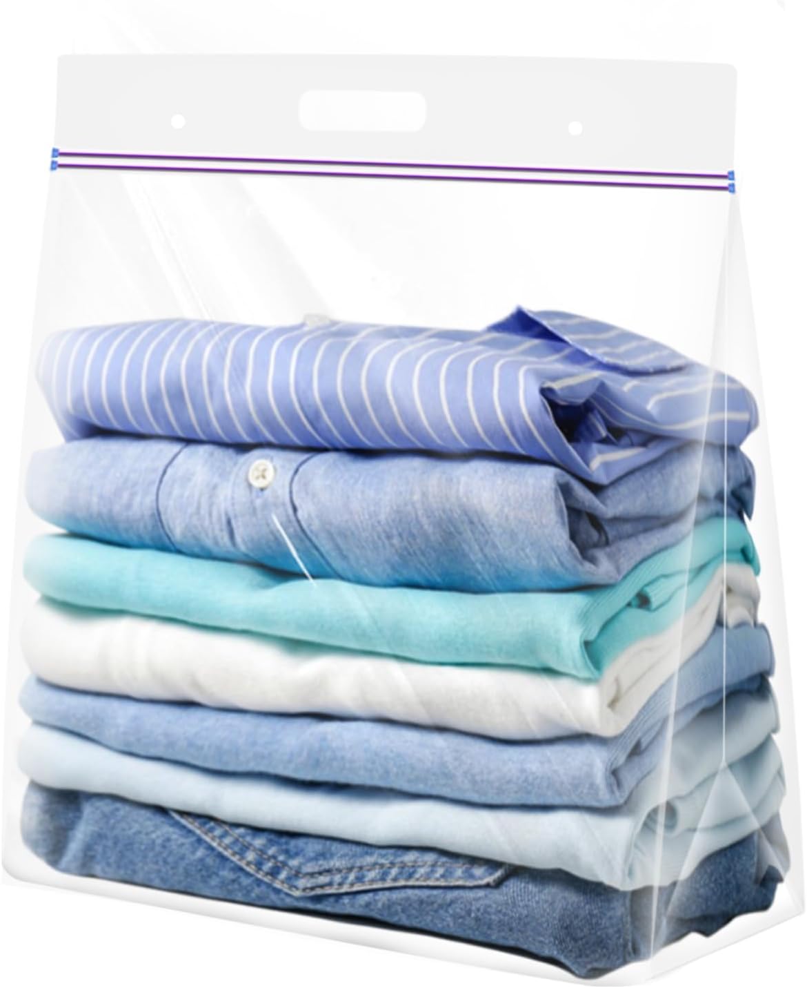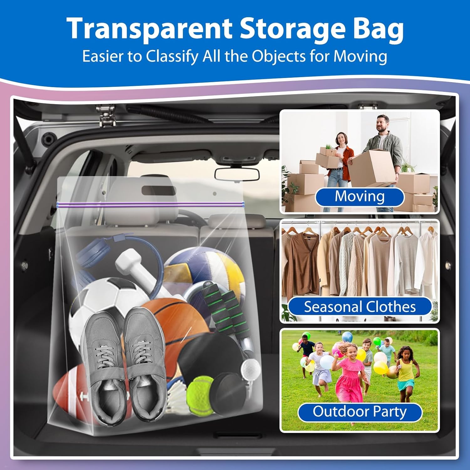 Carry Handle & Expandable Bottom: The large plastic storage bags with carry handles make it convenient to transport items for moving or travel. Expandable bottom design of the storage bags allow you to store more and stand them for filling